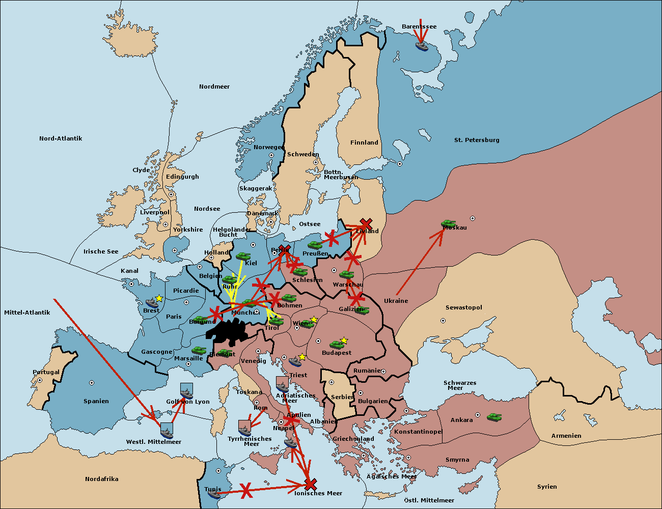 • Die Armee in Kiel support move nach München von Ruhr.
