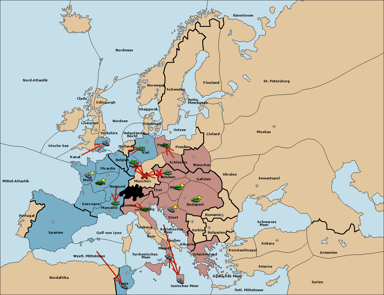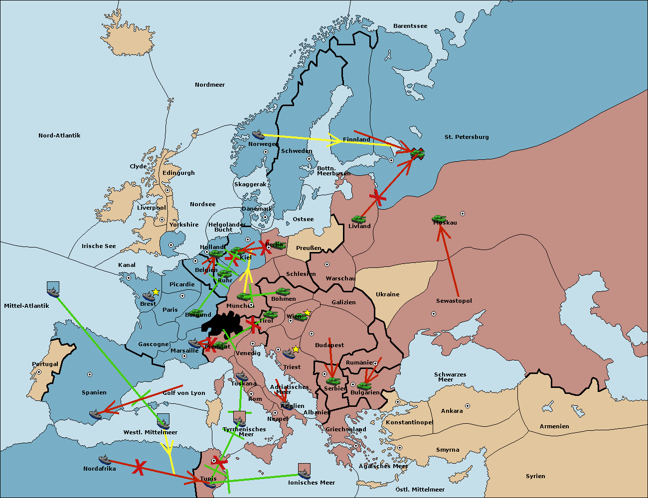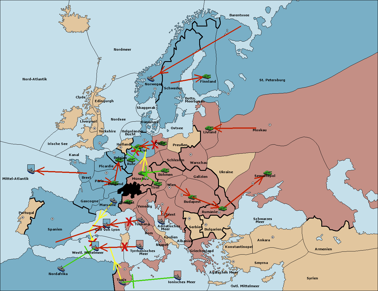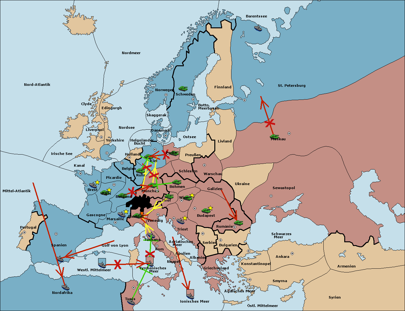• Die Armee in Kiel support move nach München von Burgund. (gescheitert)