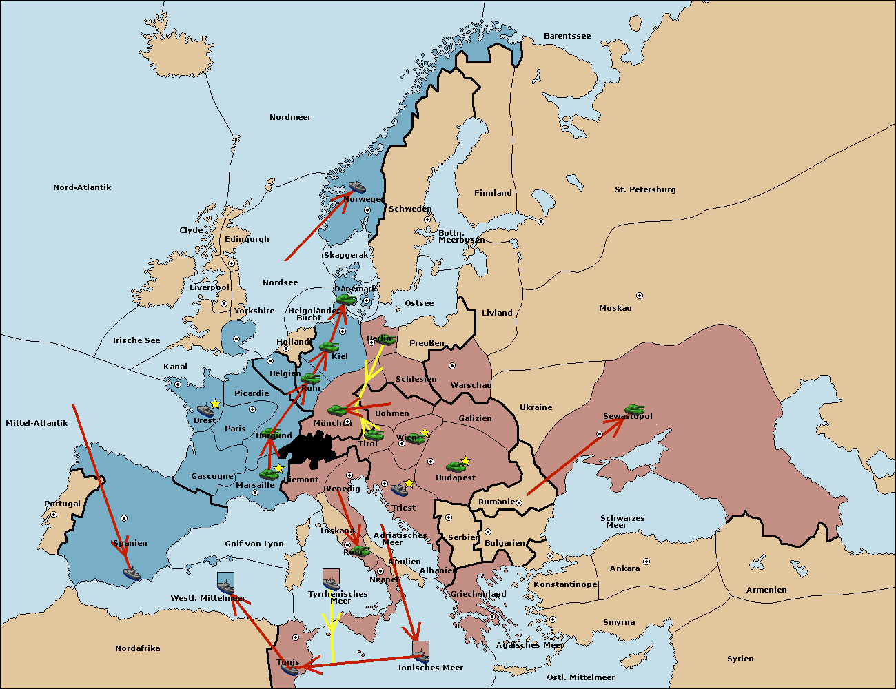 • Die Flotte in Nord Afrika support hold nach westl. Mittelmeer.