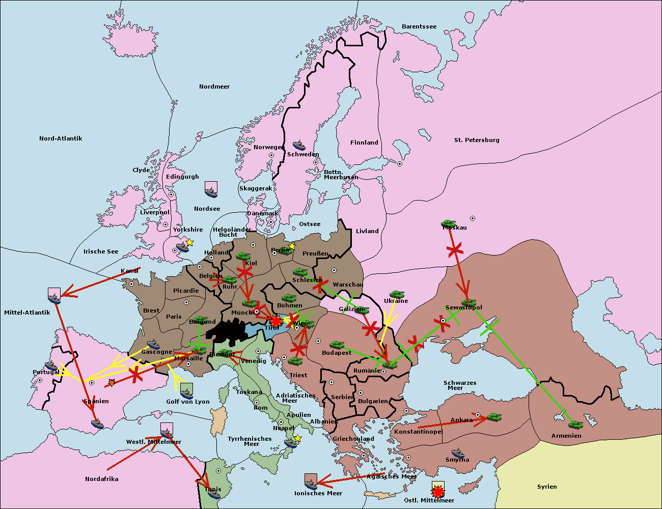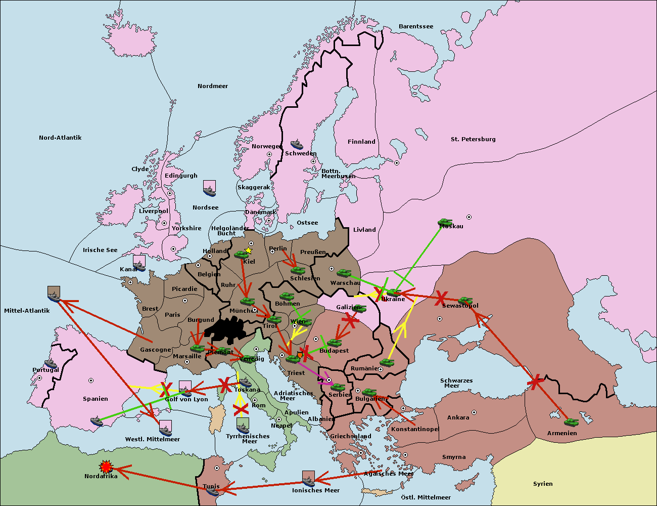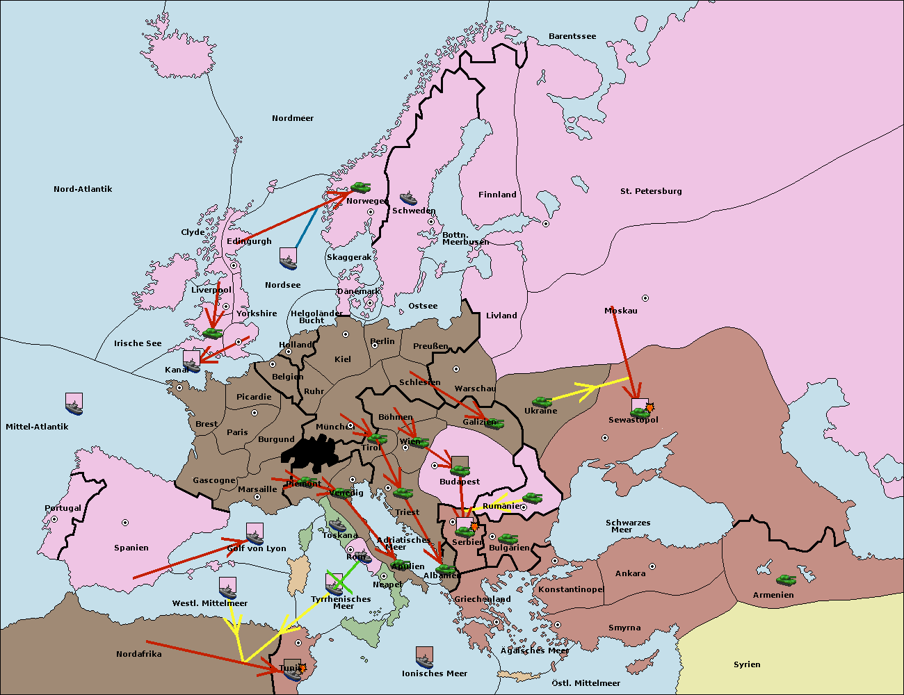 • Die Flotte in Spanien (Südküste) move nach westl. Mittelmeer.