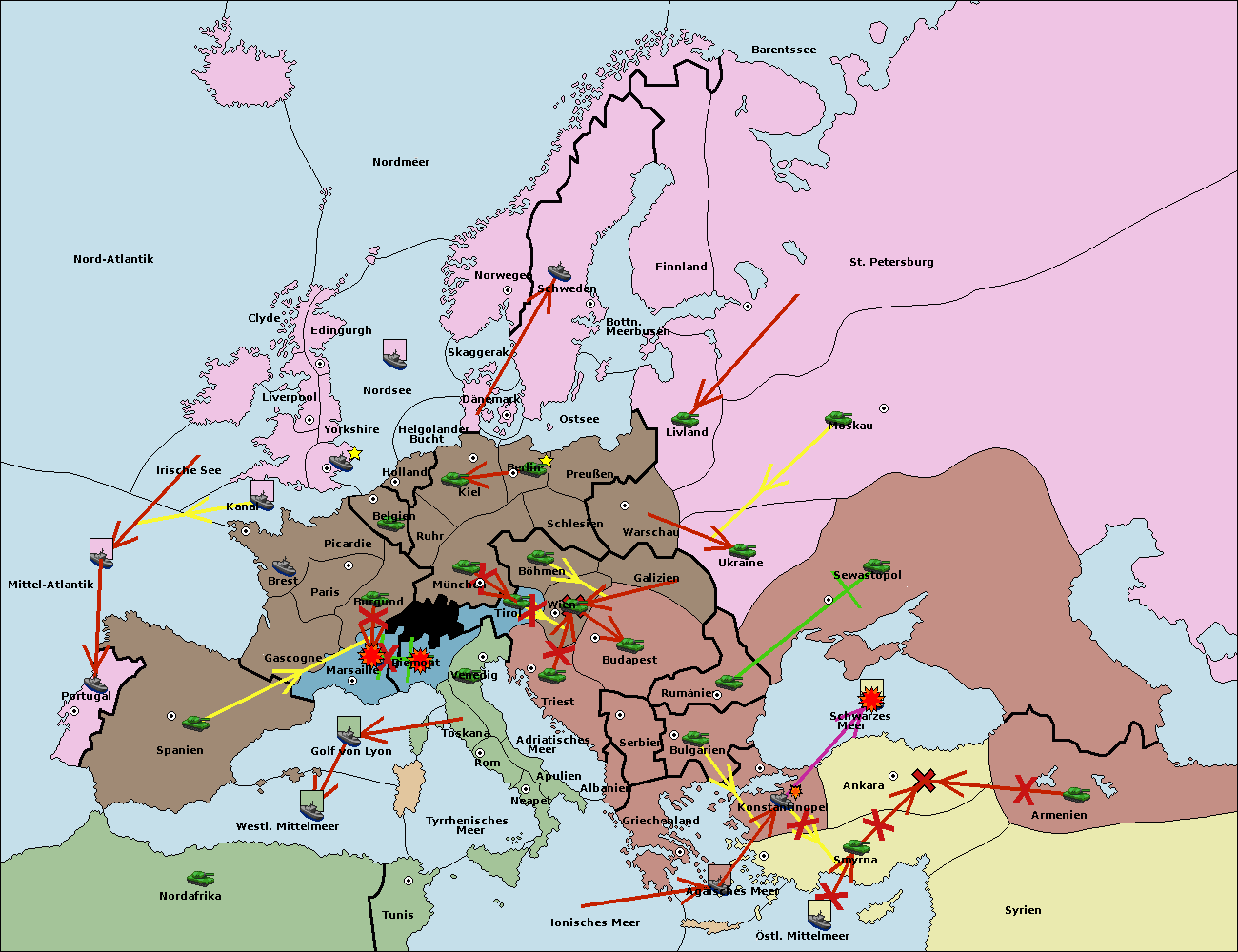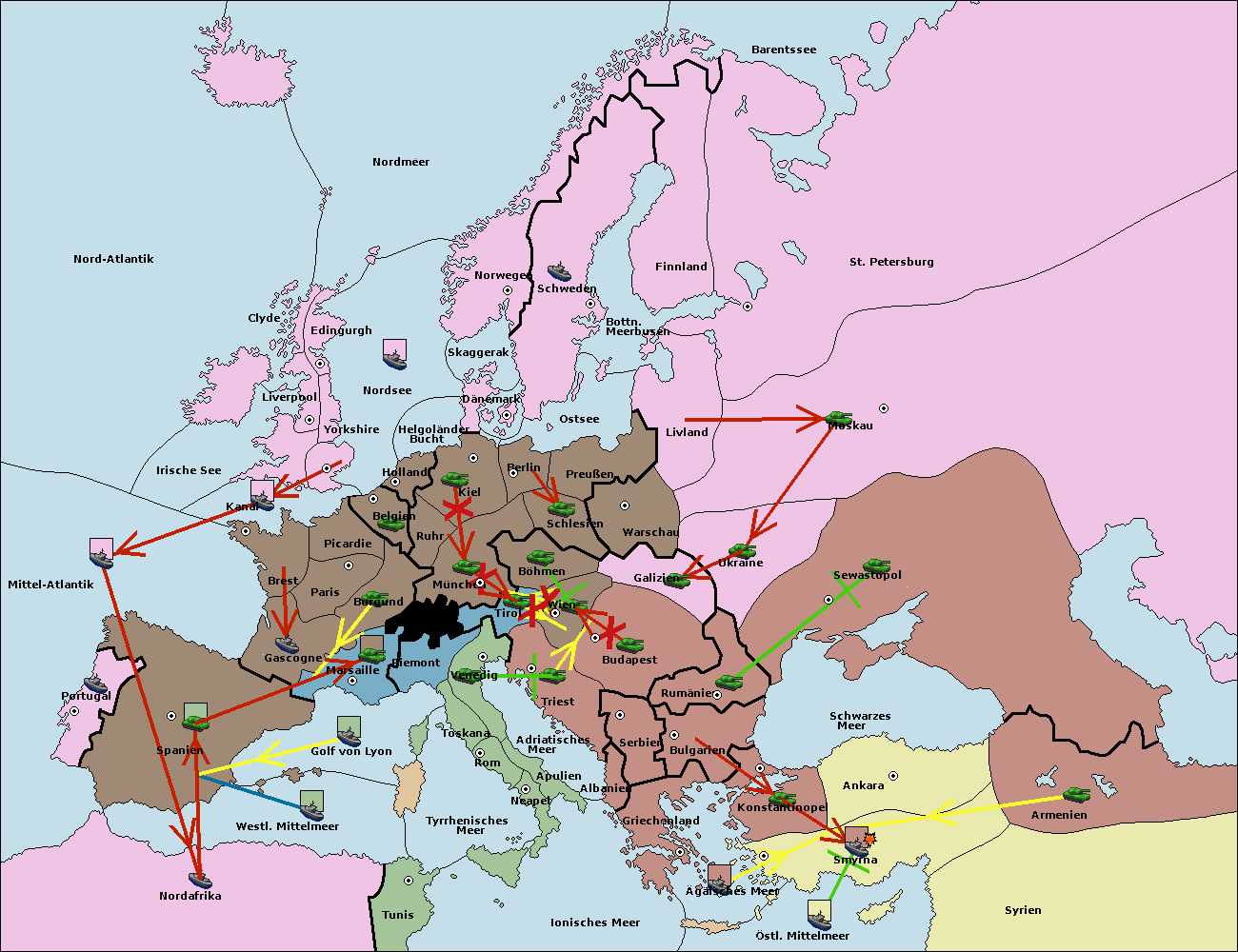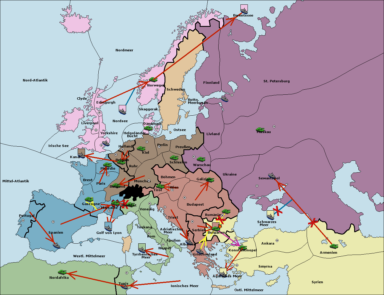 • Die Armee in Armenien move nach Bulgarien via Concoy. (gescheitert)