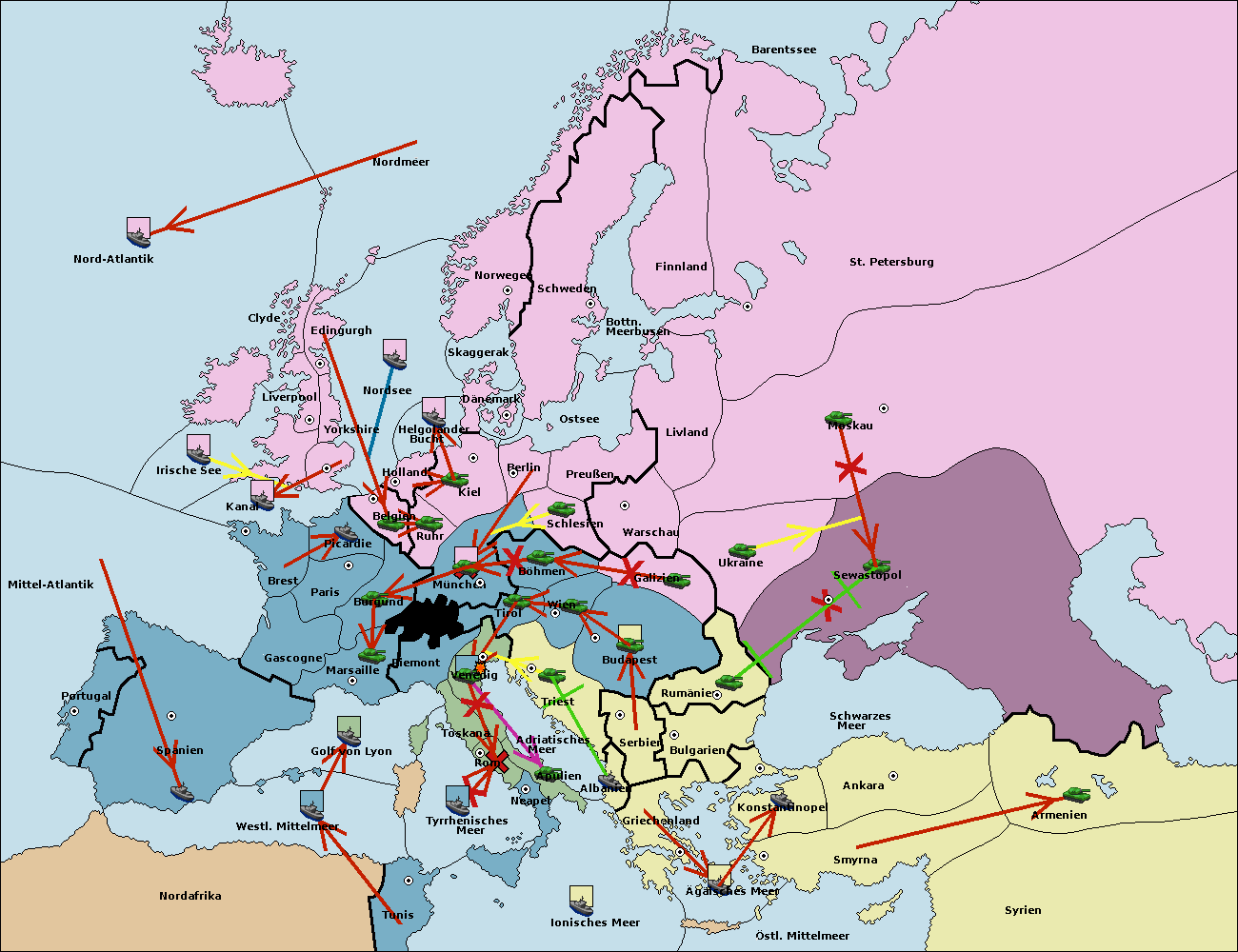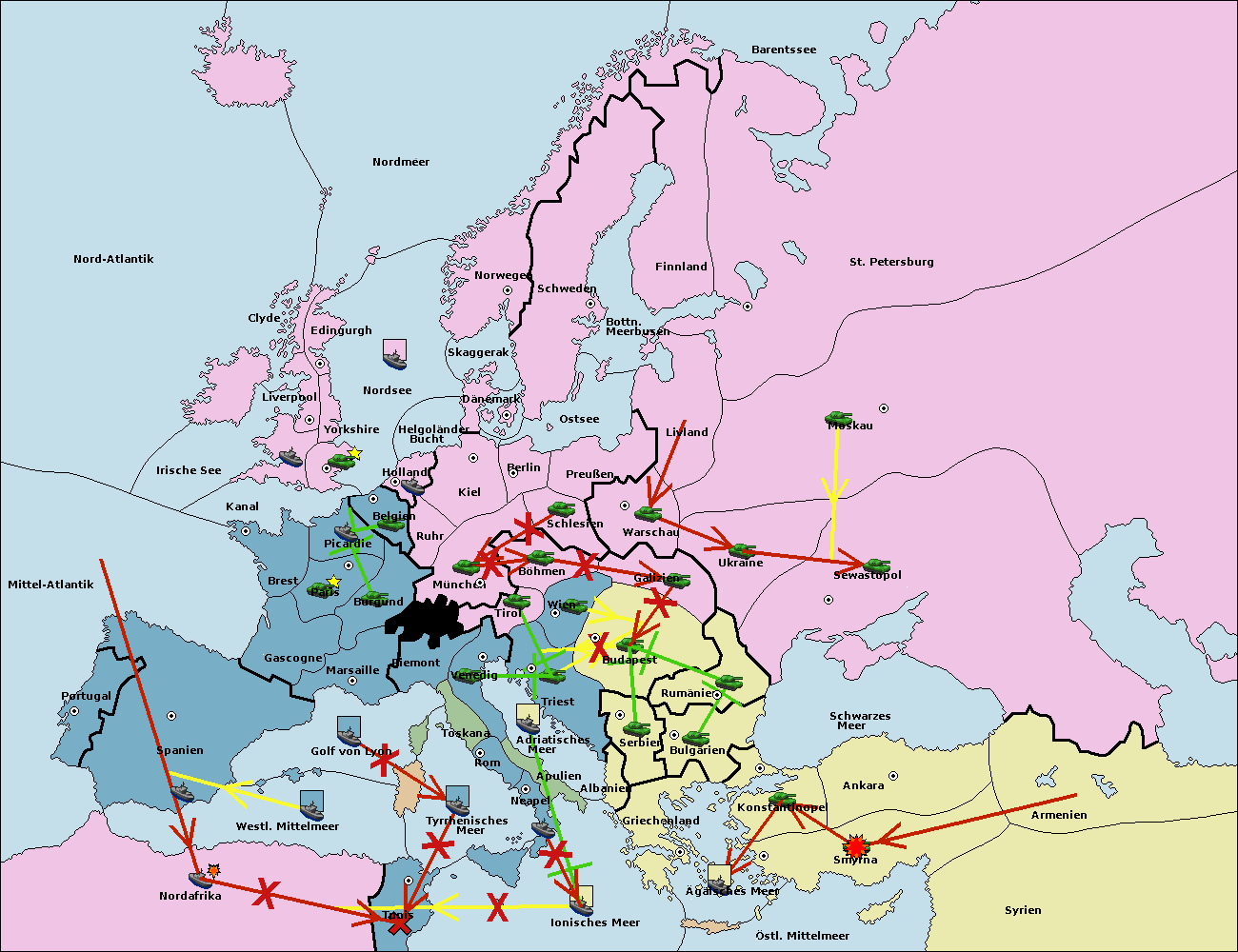 • Die Armee in Konstantinopel support hold nach Bulgarien.