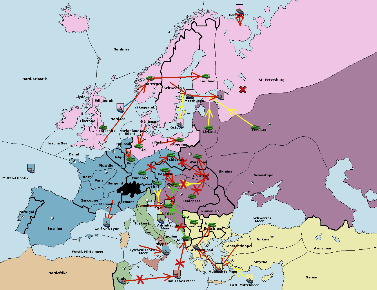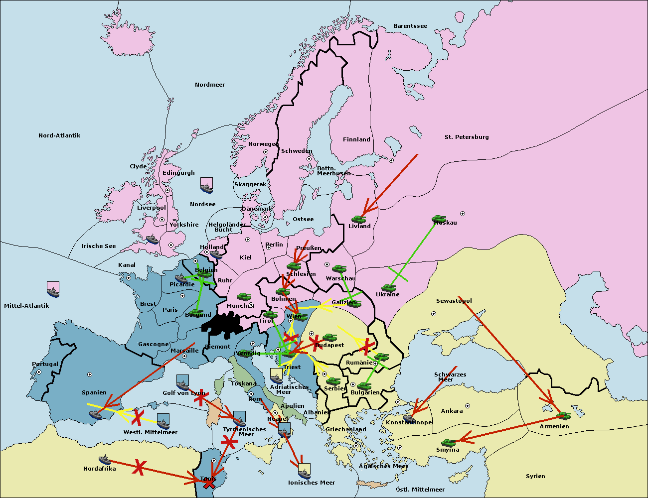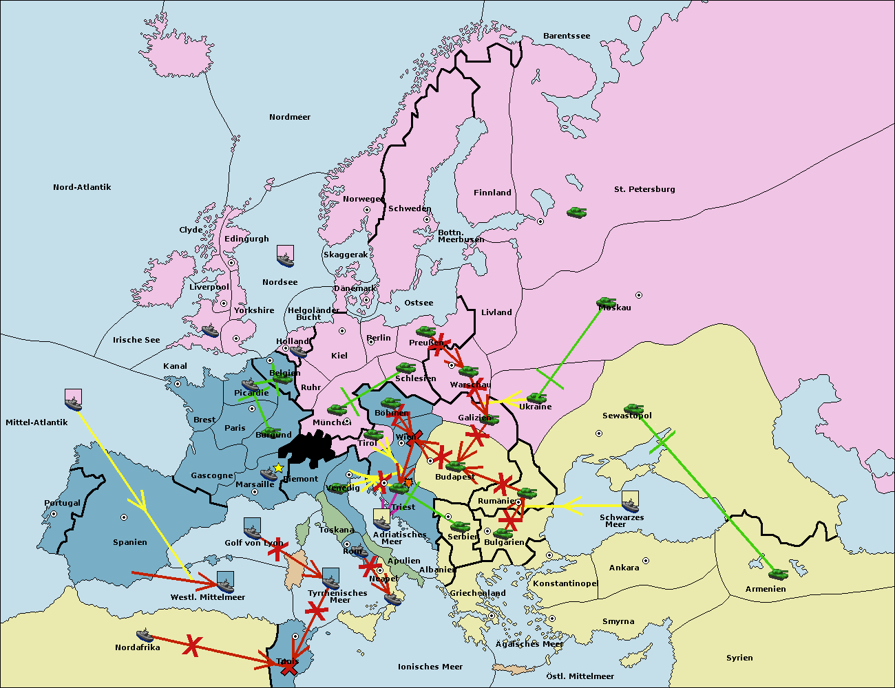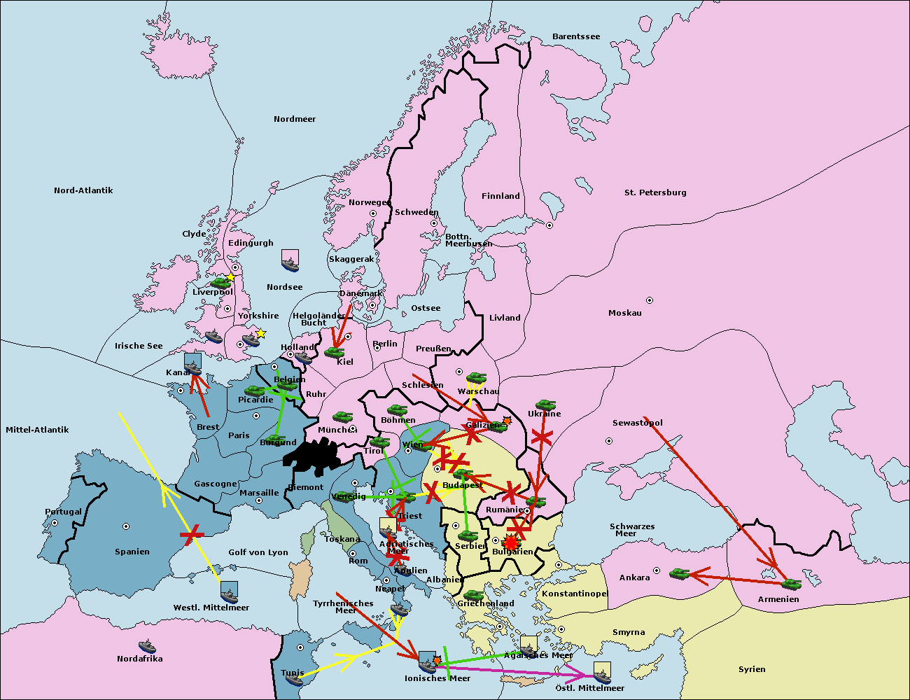 • Die Armee in Triest support move nach Serbien von Budapest. (gescheitert)