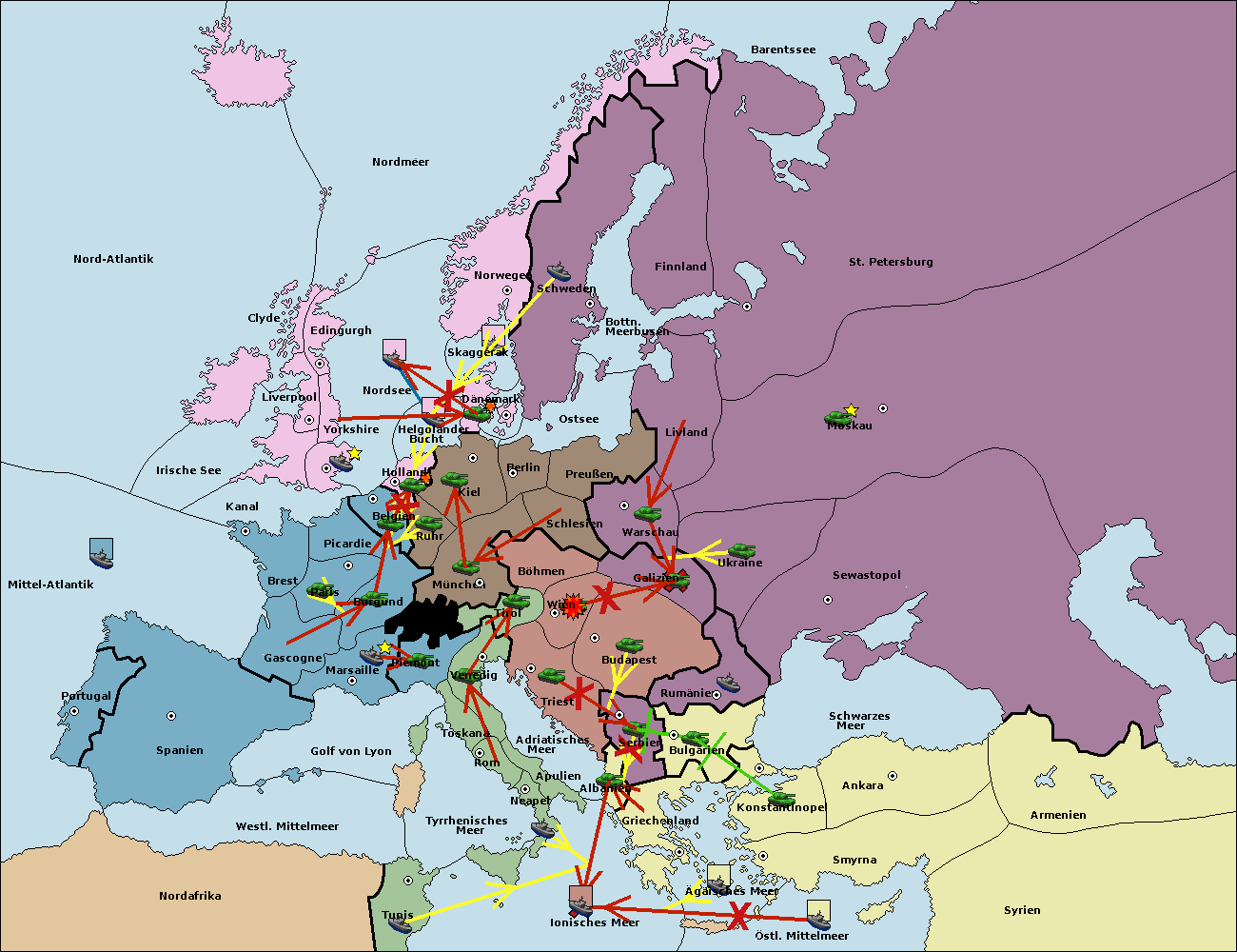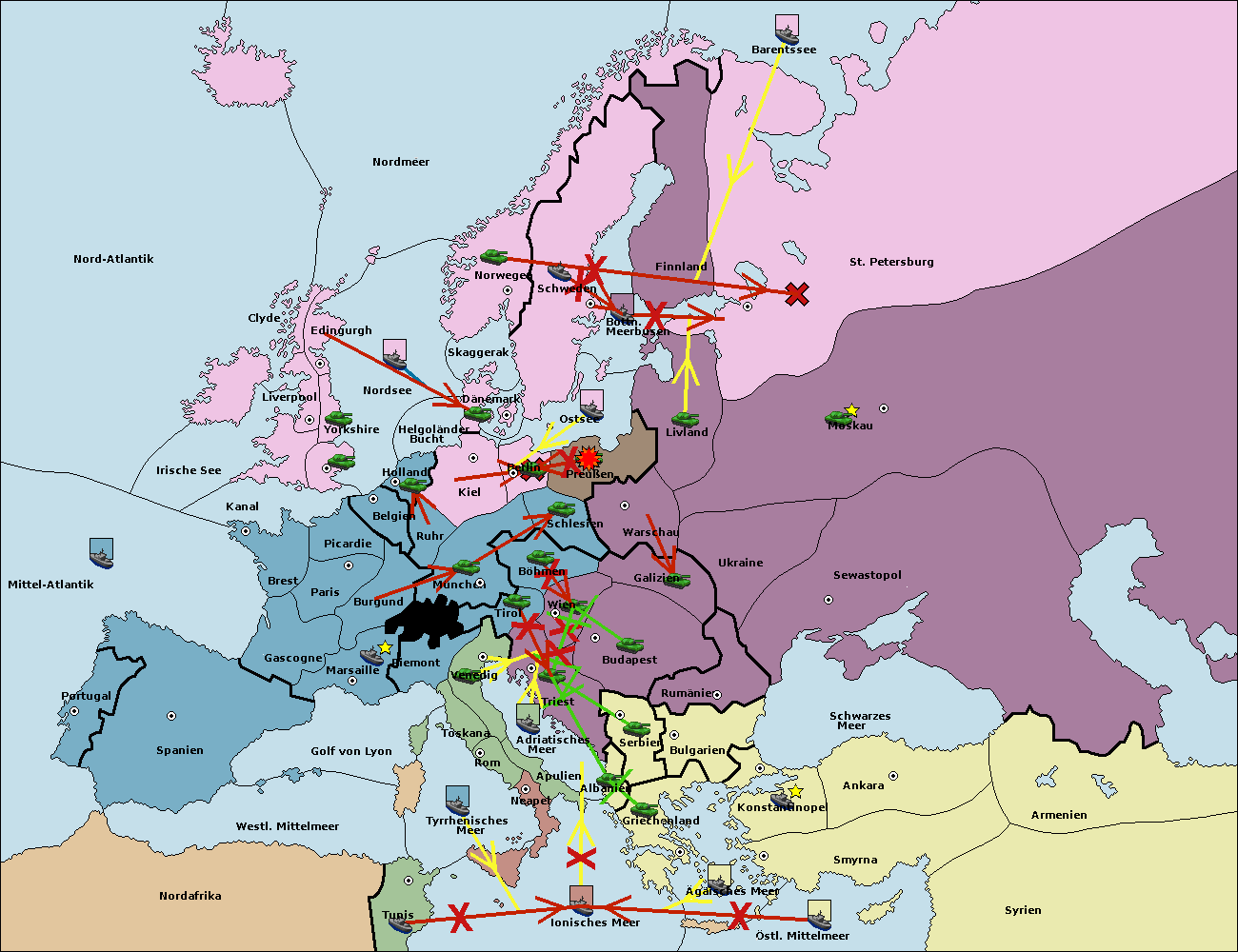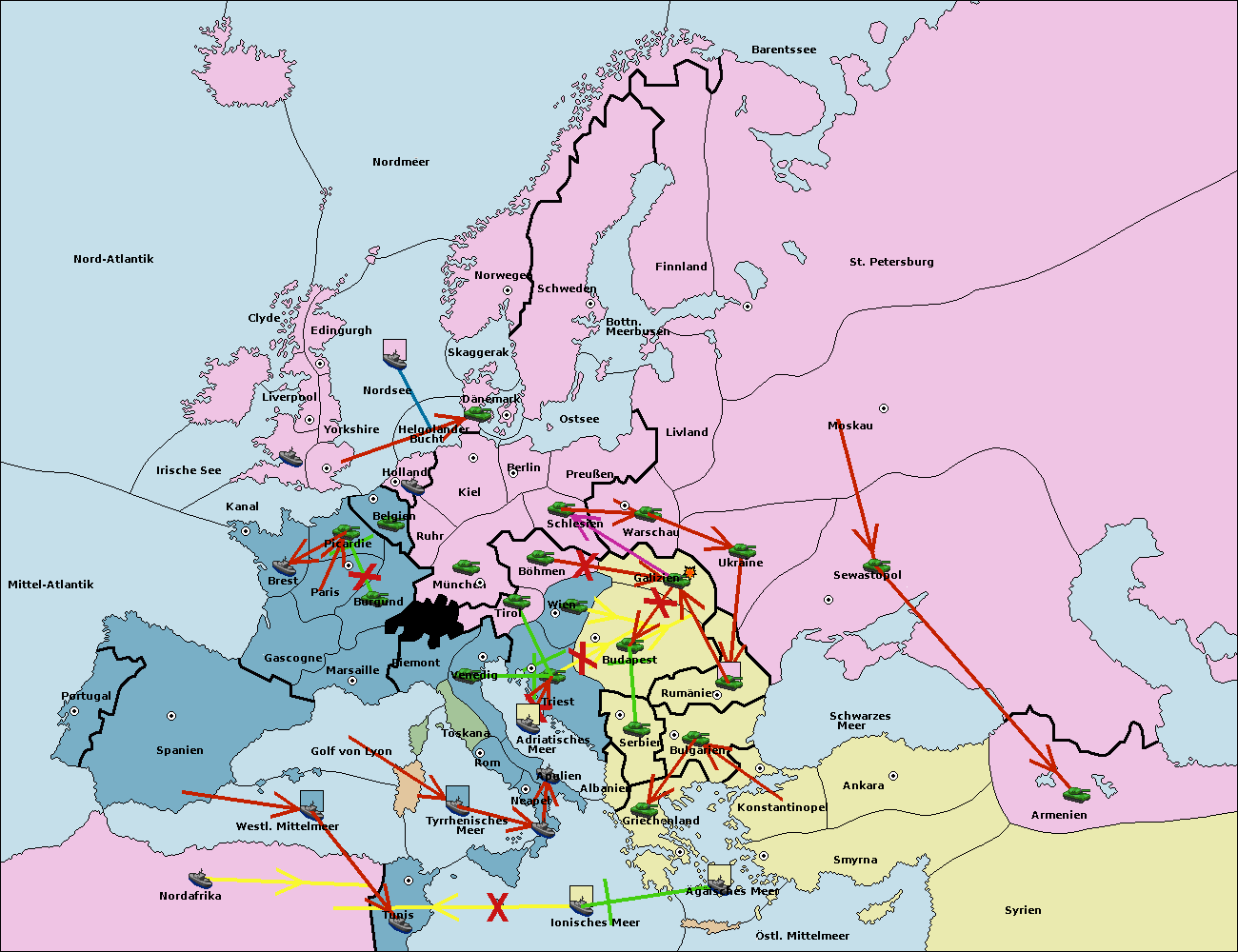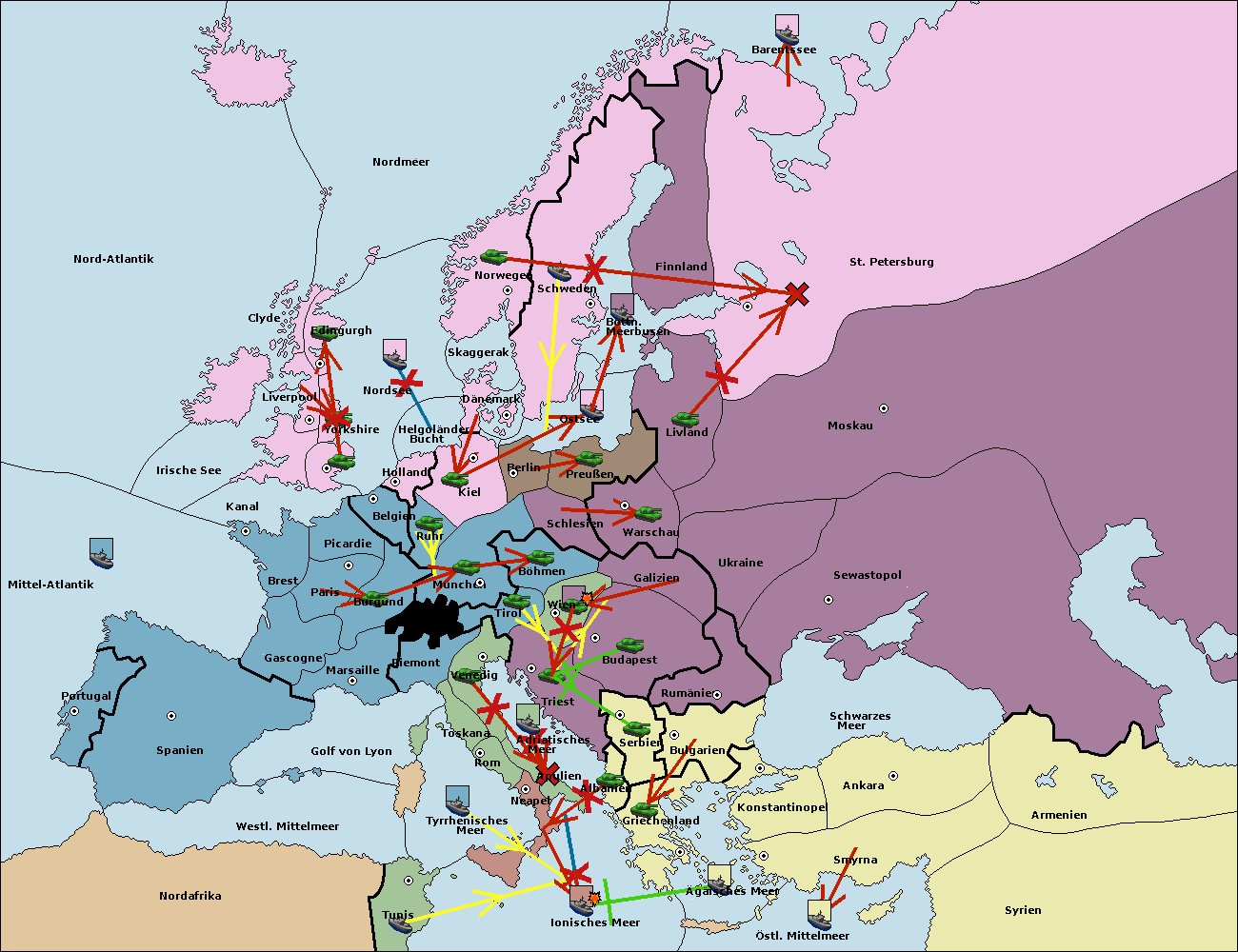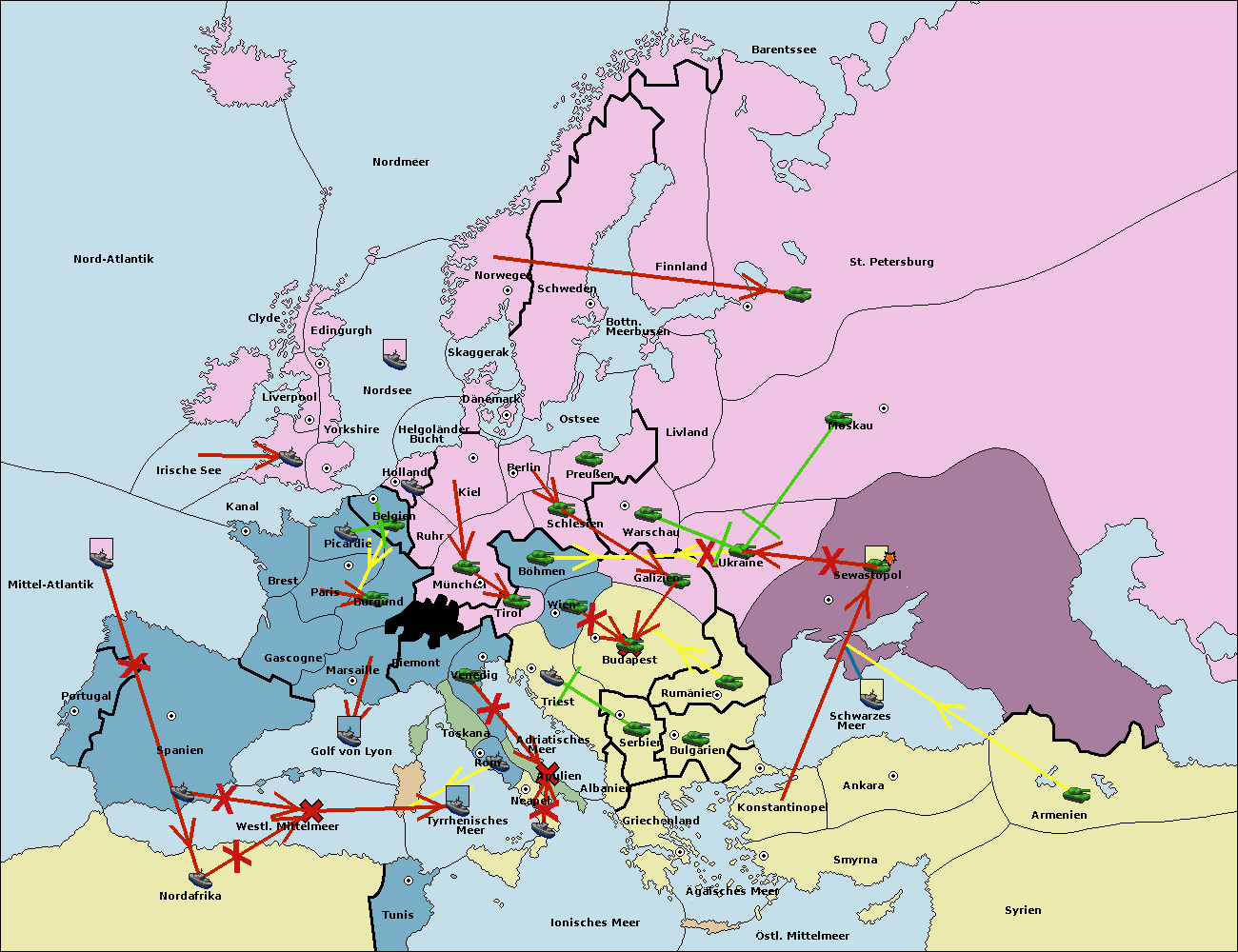 • Die Armee in Triest support move nach Serbien von Budapest. (gescheitert)