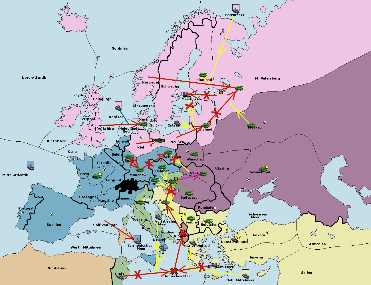 • Die Armee in Serbien support move nach Triest von Albanien. (gescheitert)