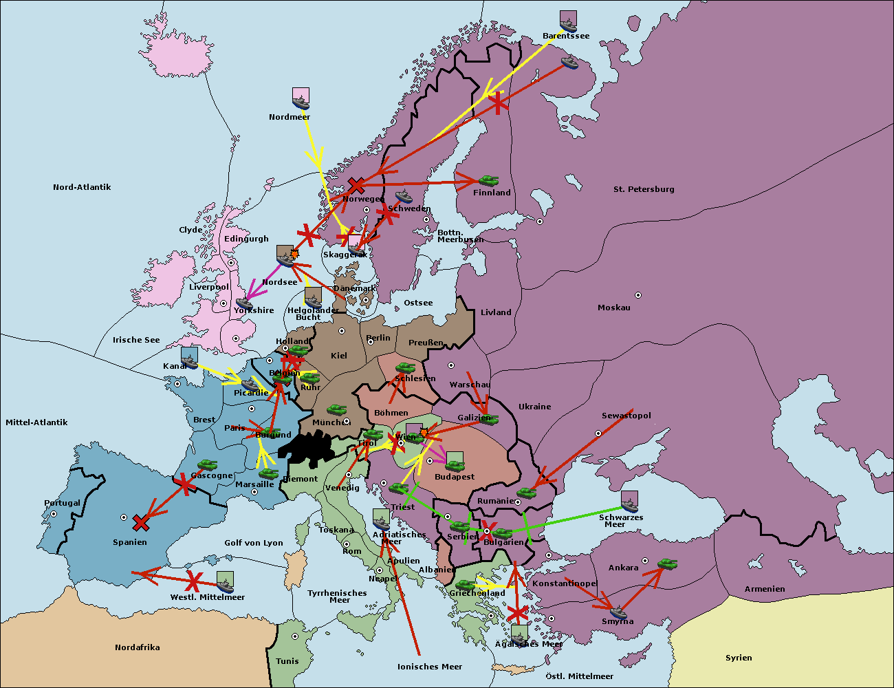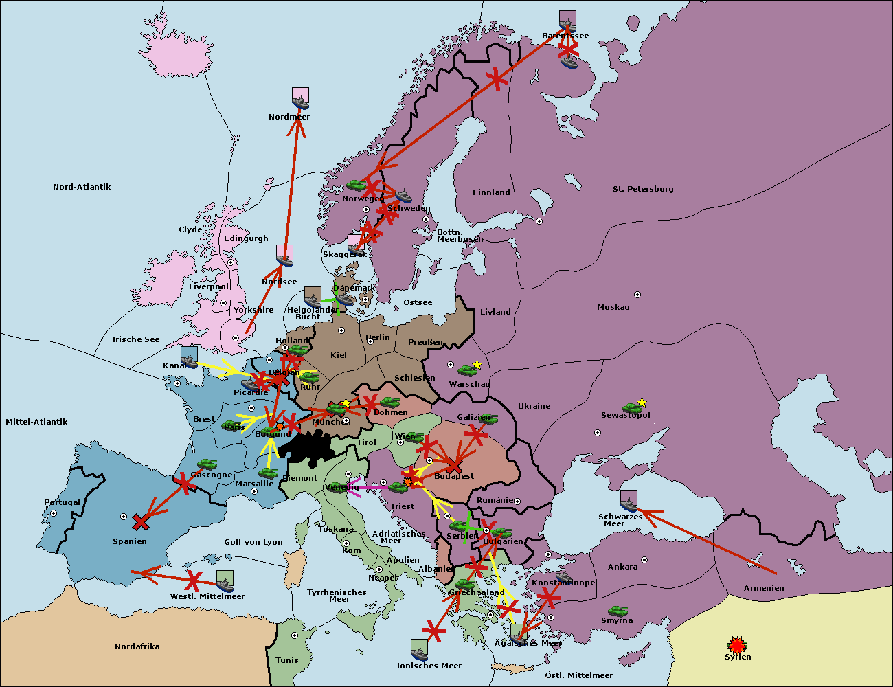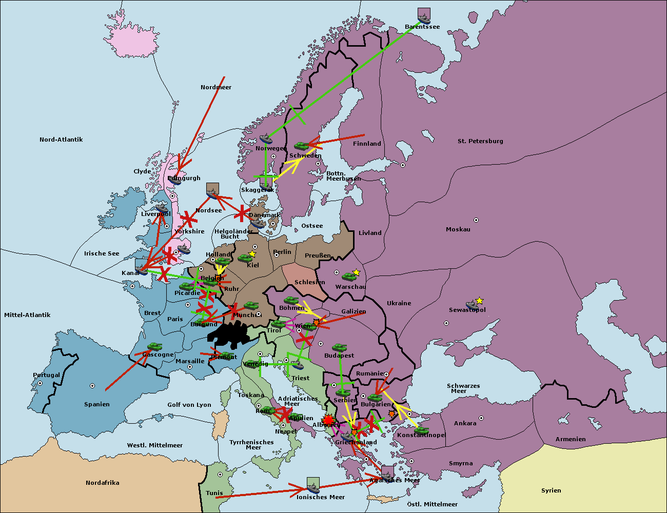 • Die Armee in Budapest support move nach Triest von Serbien.