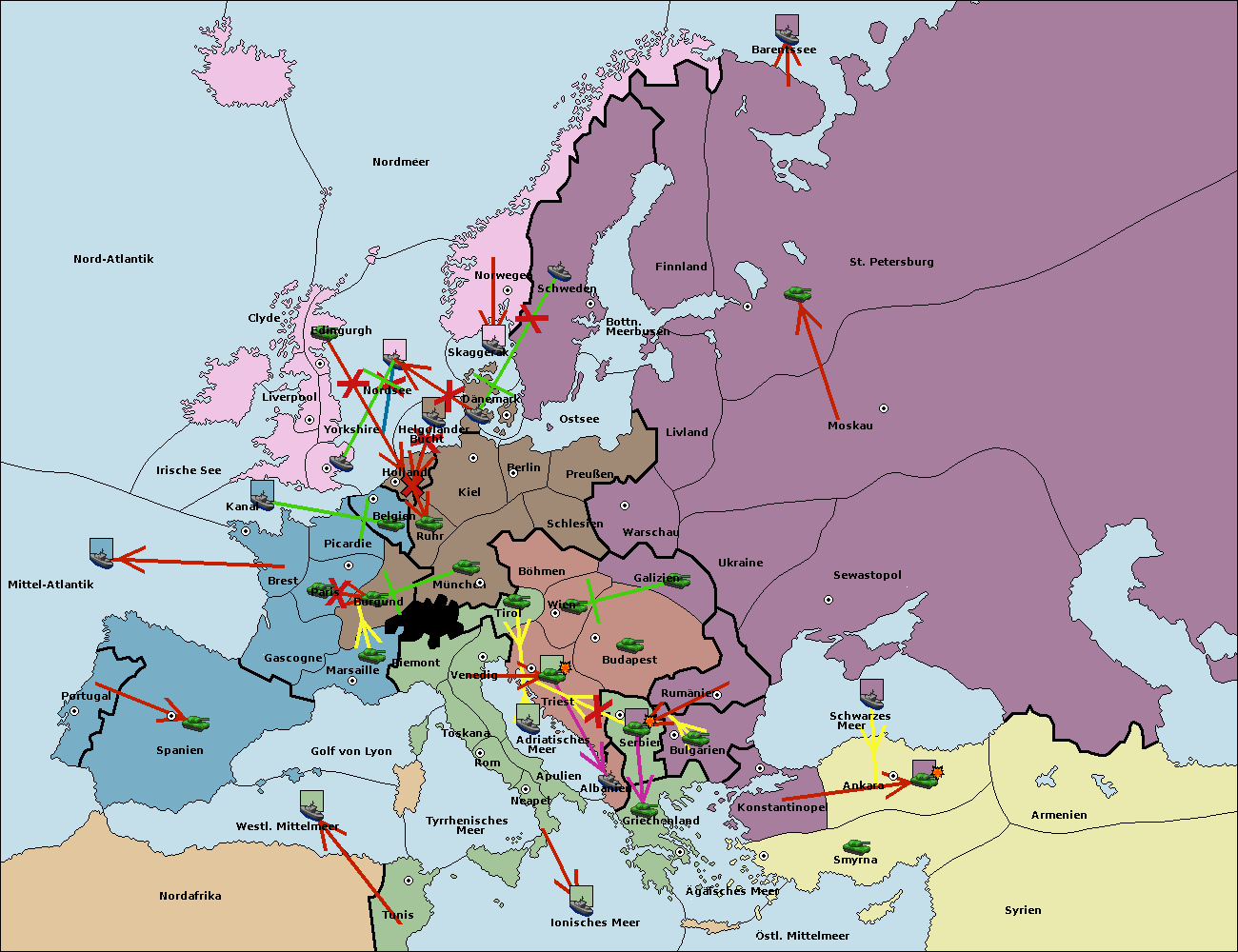 • Die Flotte in St. Petersburg (Nordküste) move nach Barentssee.