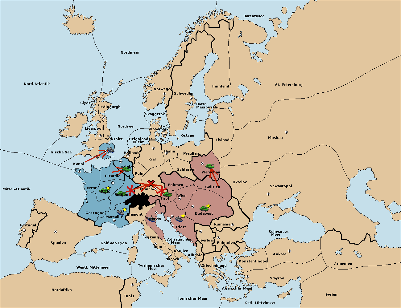 • Die Armee in Ruhr support move nach Burgund von Paris.
