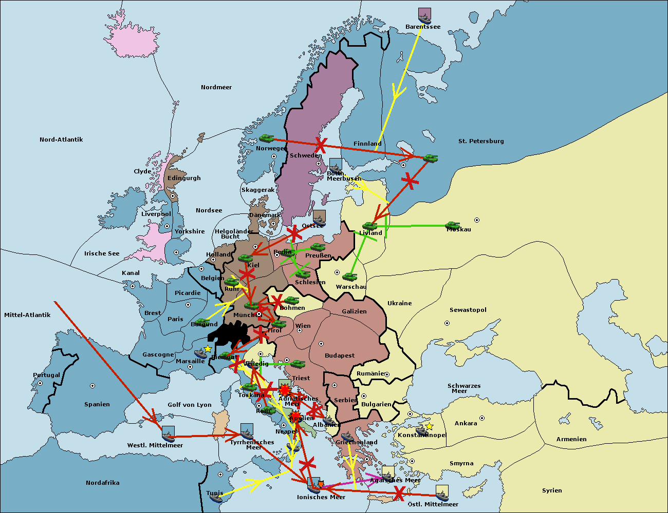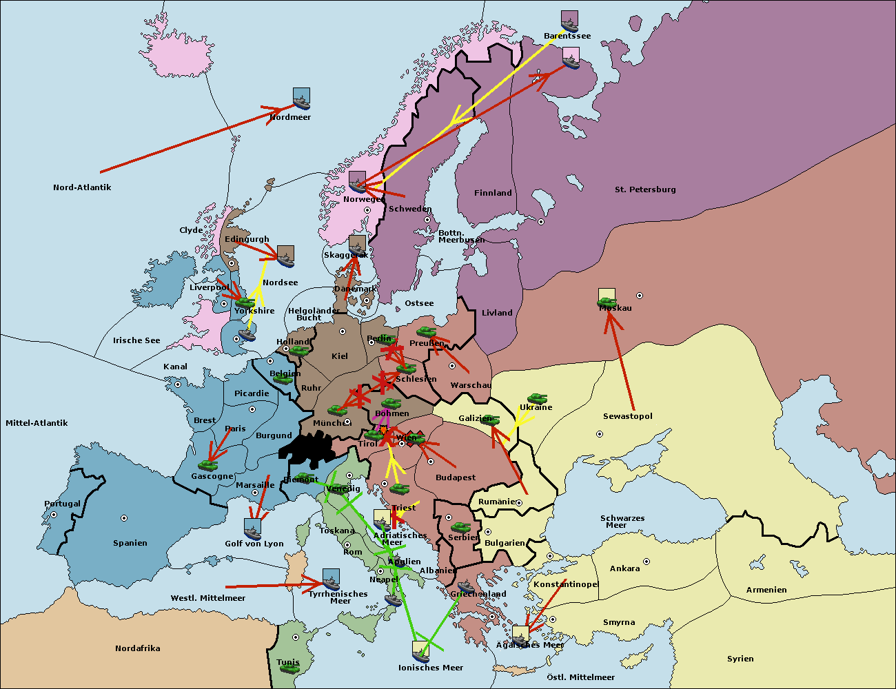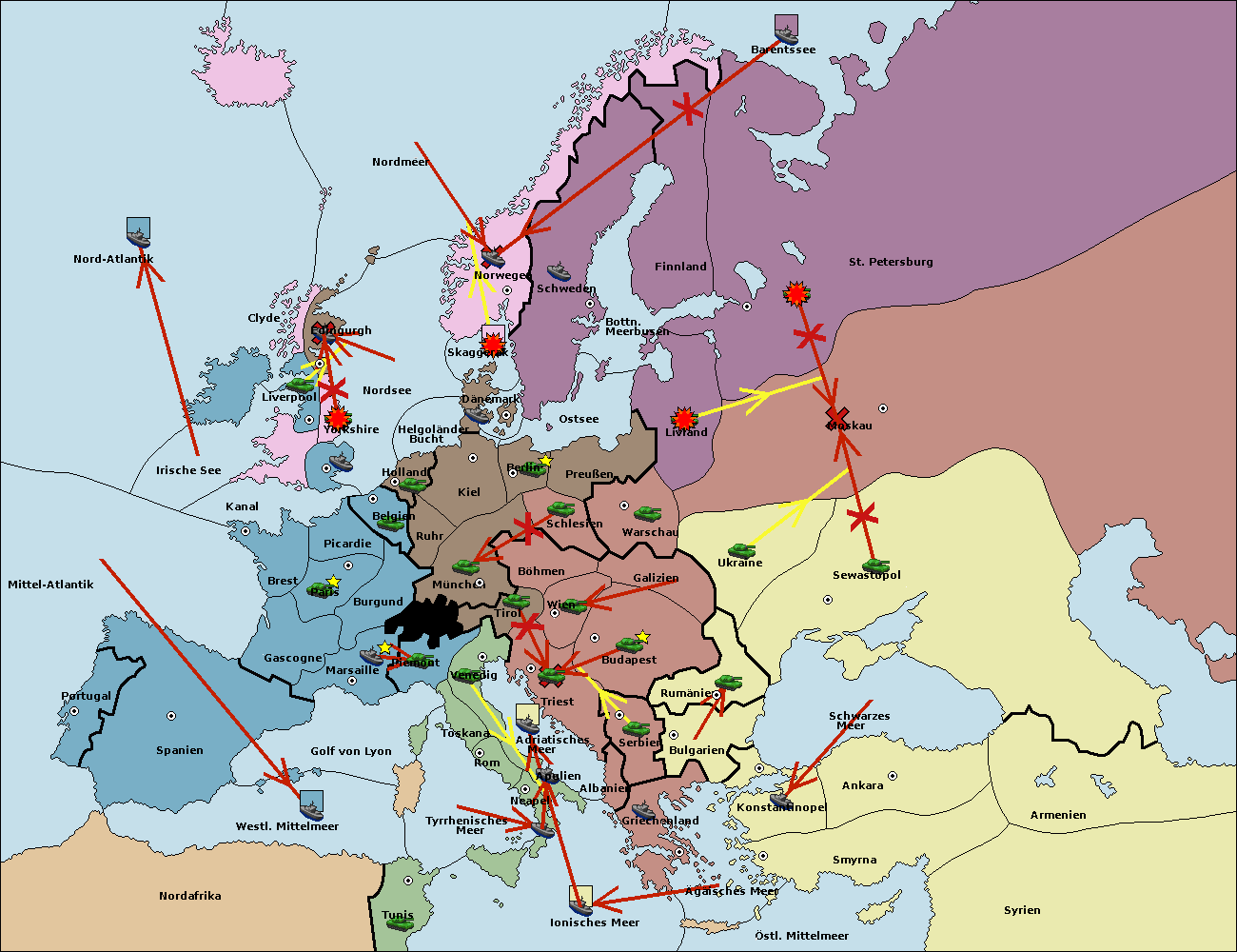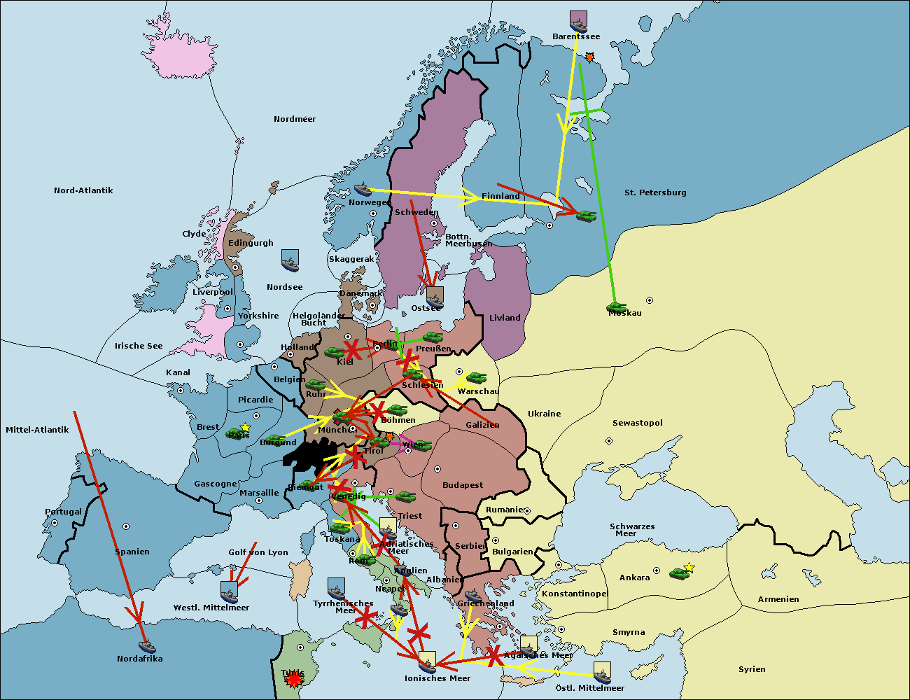 • Die Flotte in St. Petersburg (Nordküste) move nach Barentssee.