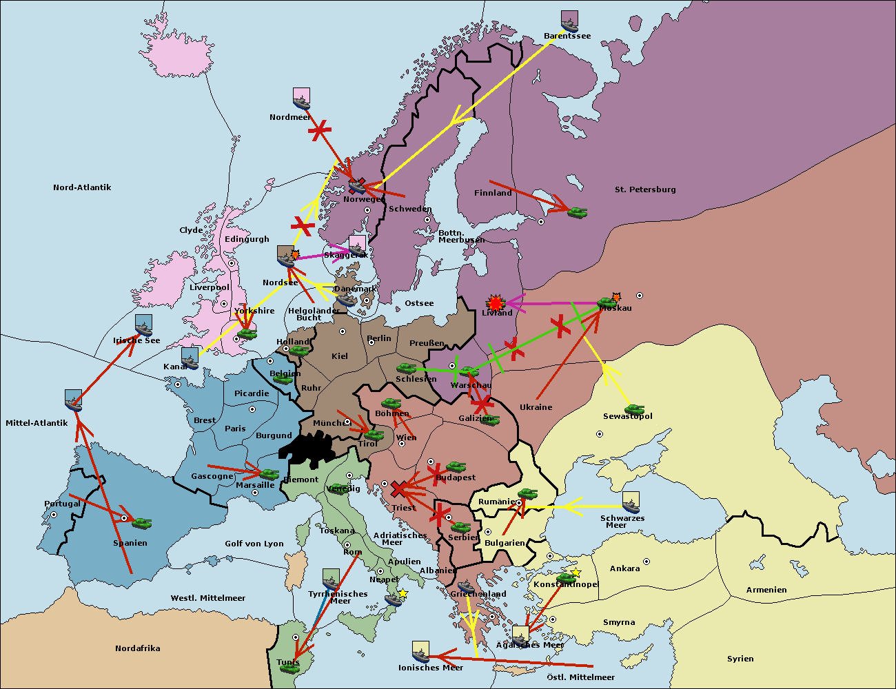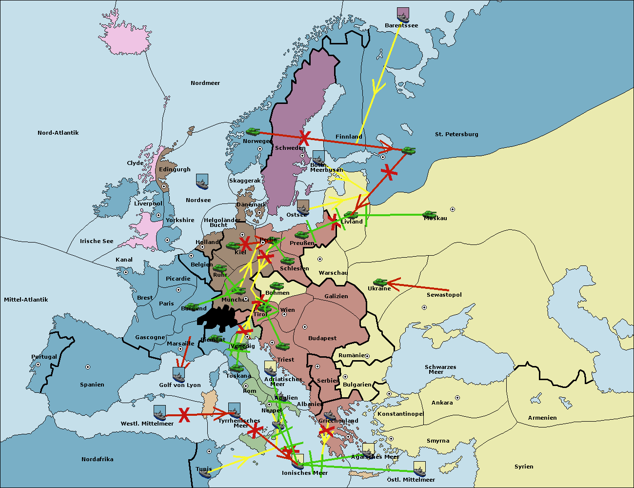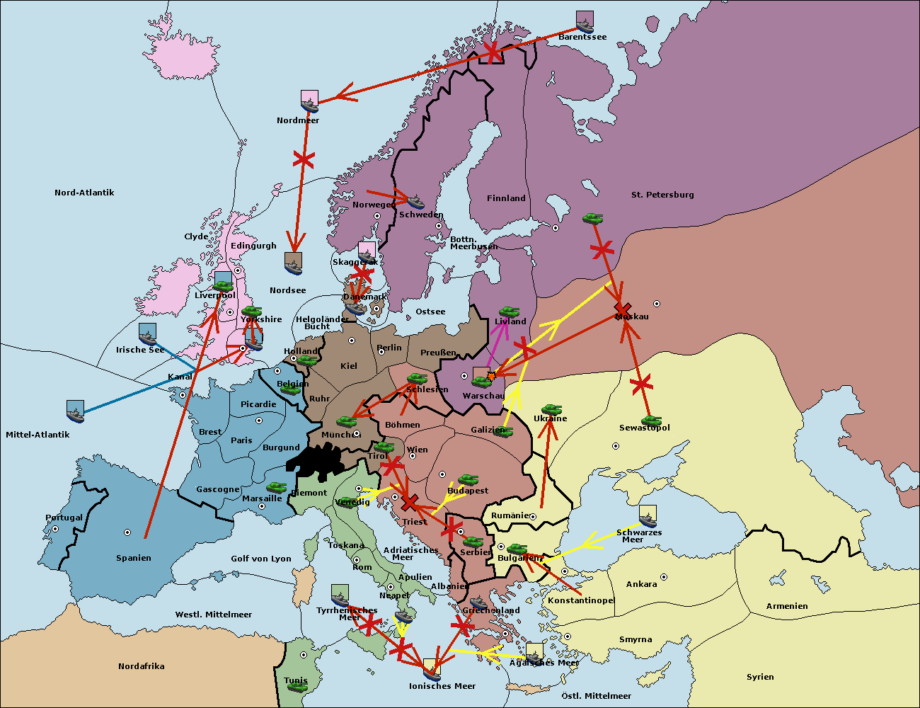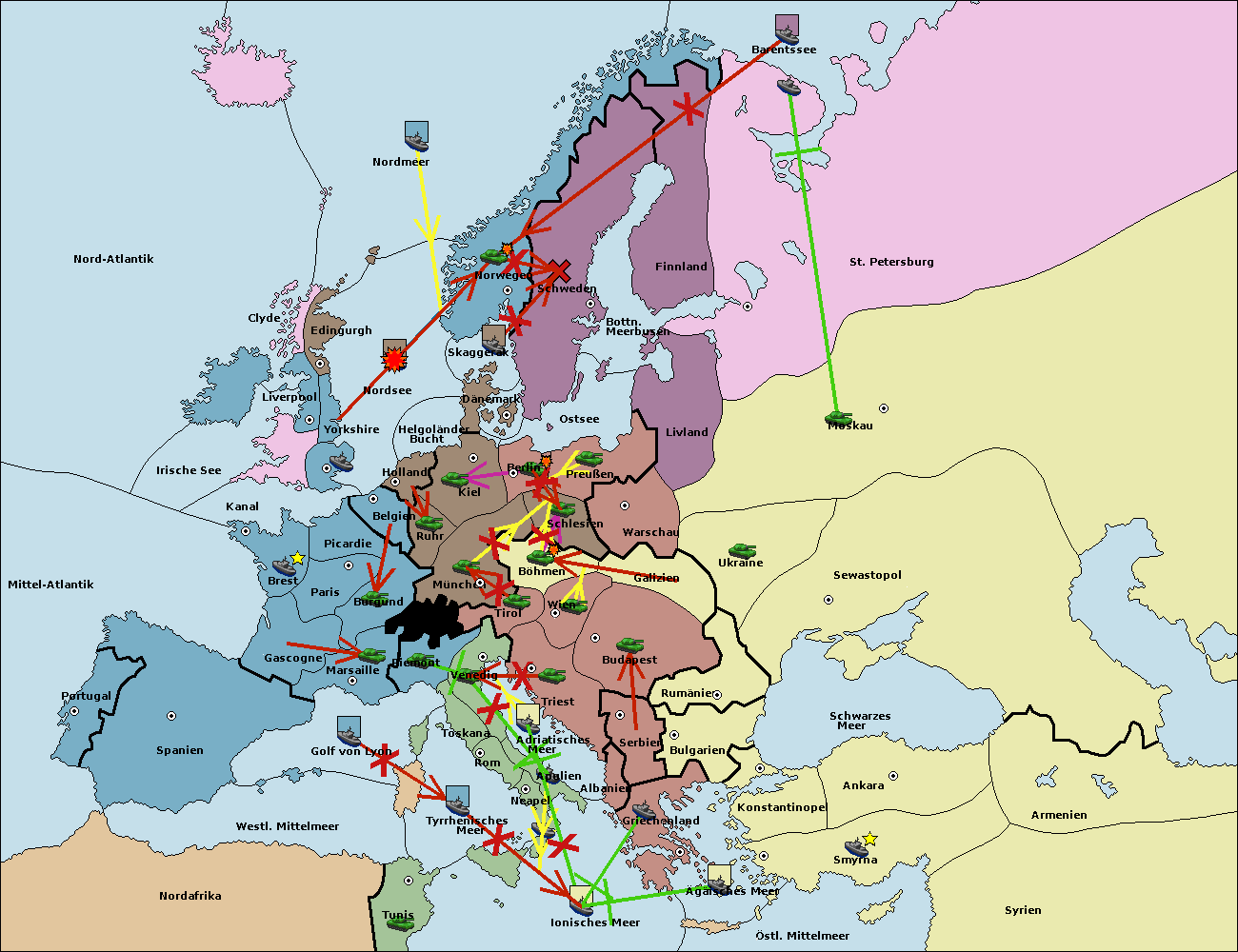 • Die Flotte in St. Petersburg (Nordküste) move nach Barentssee.