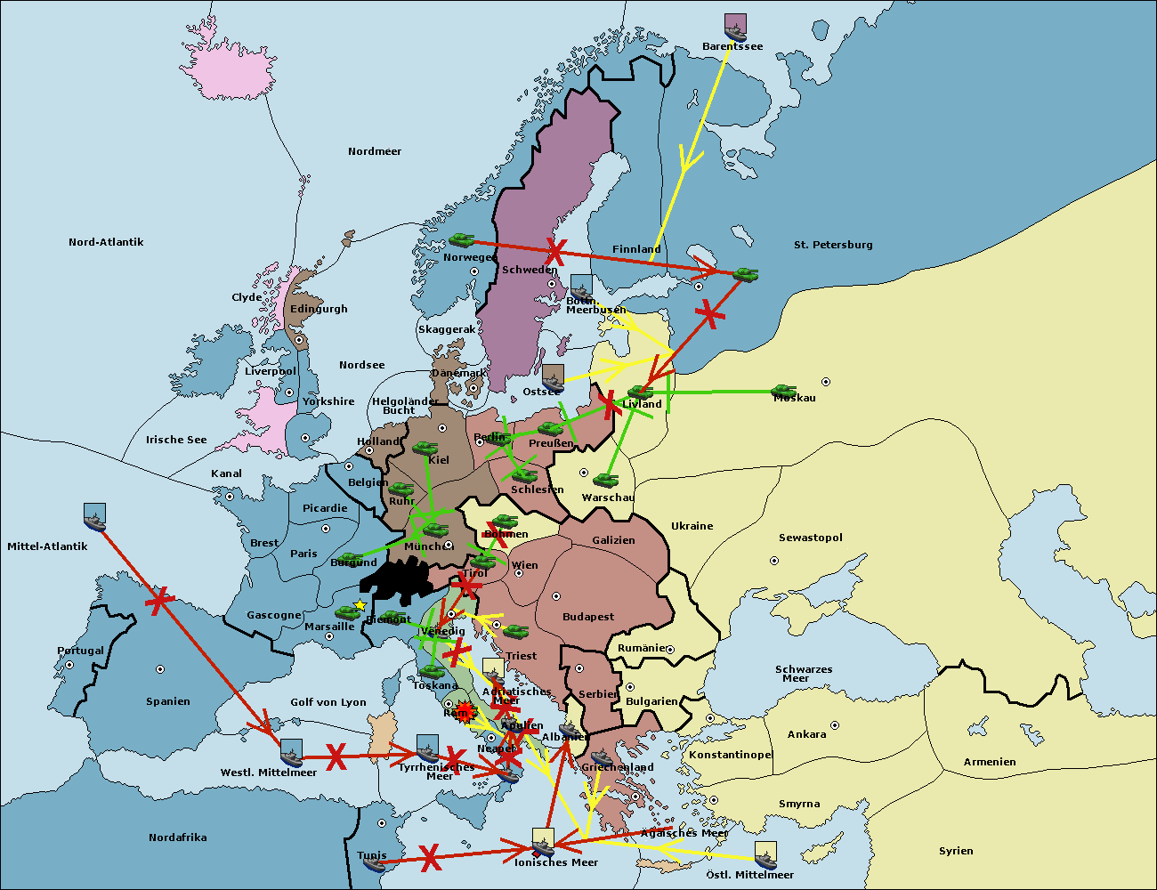 • Die Armee in Venedig support move nach Triest von Tirol.