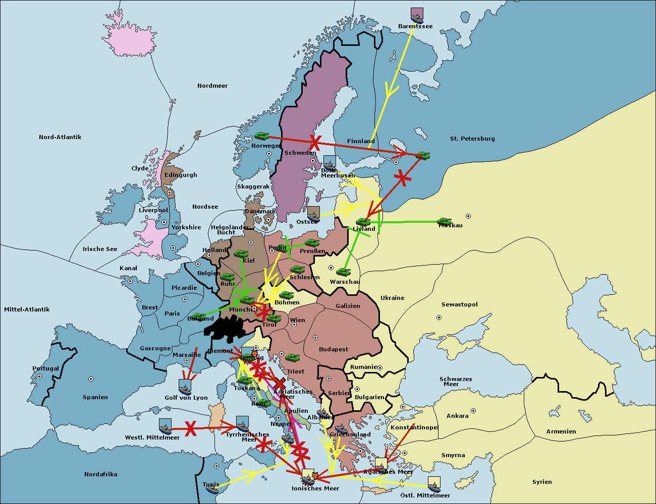 • Die Flotte in Ionisches Meer move nach Tyrrhenisches Meer.