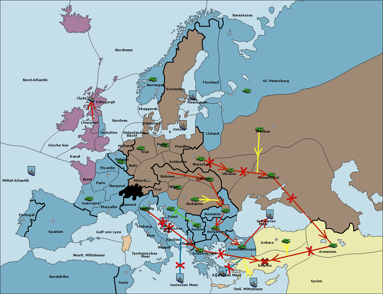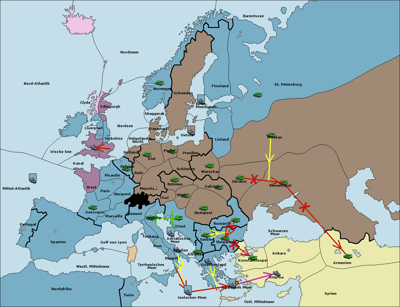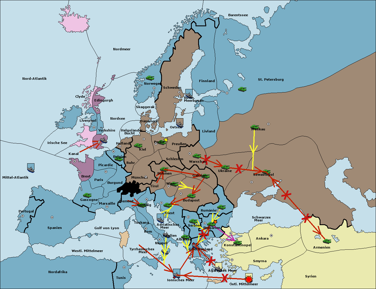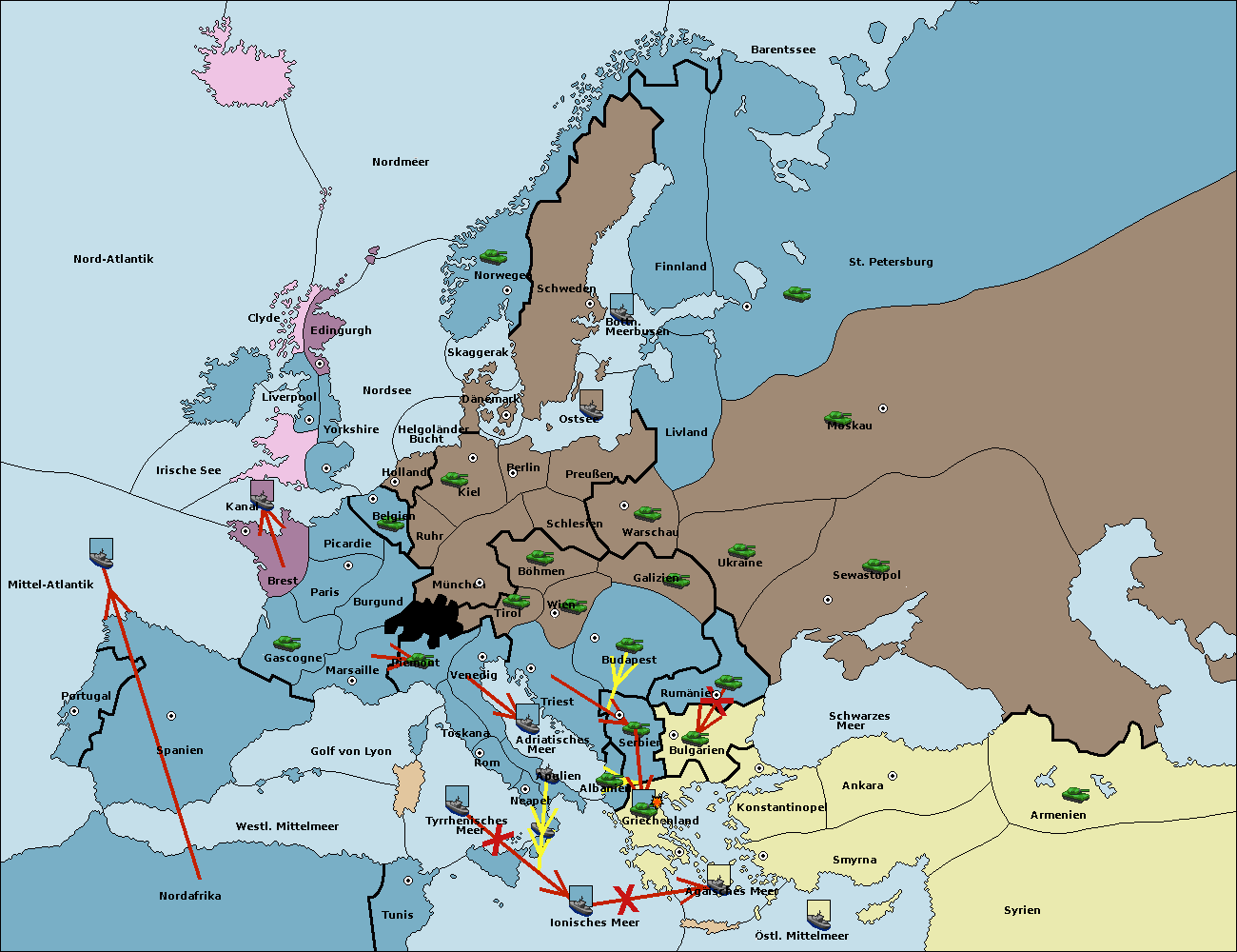 • Die Flotte in Konstantinopel support hold nach Bulgarien.