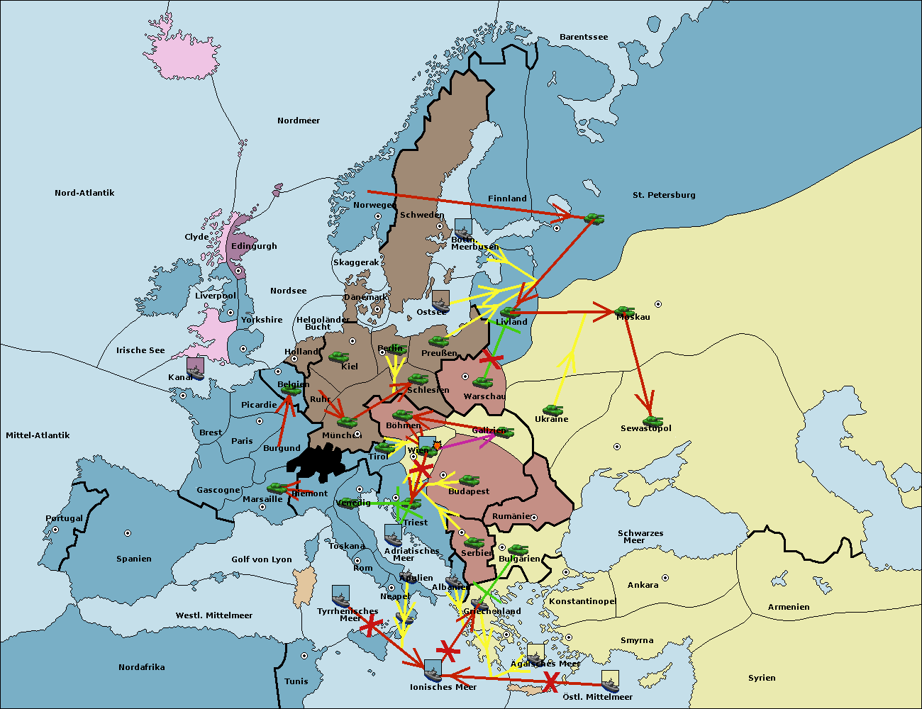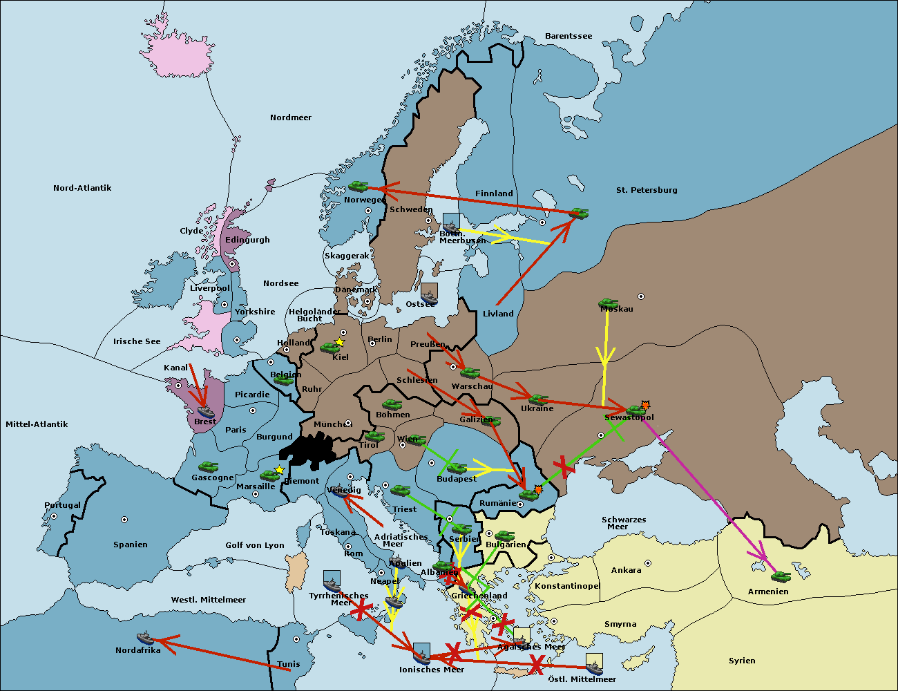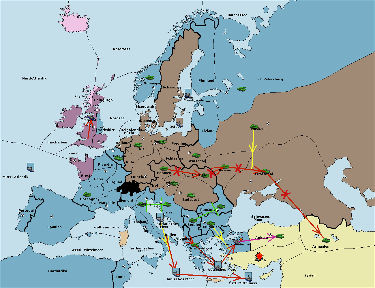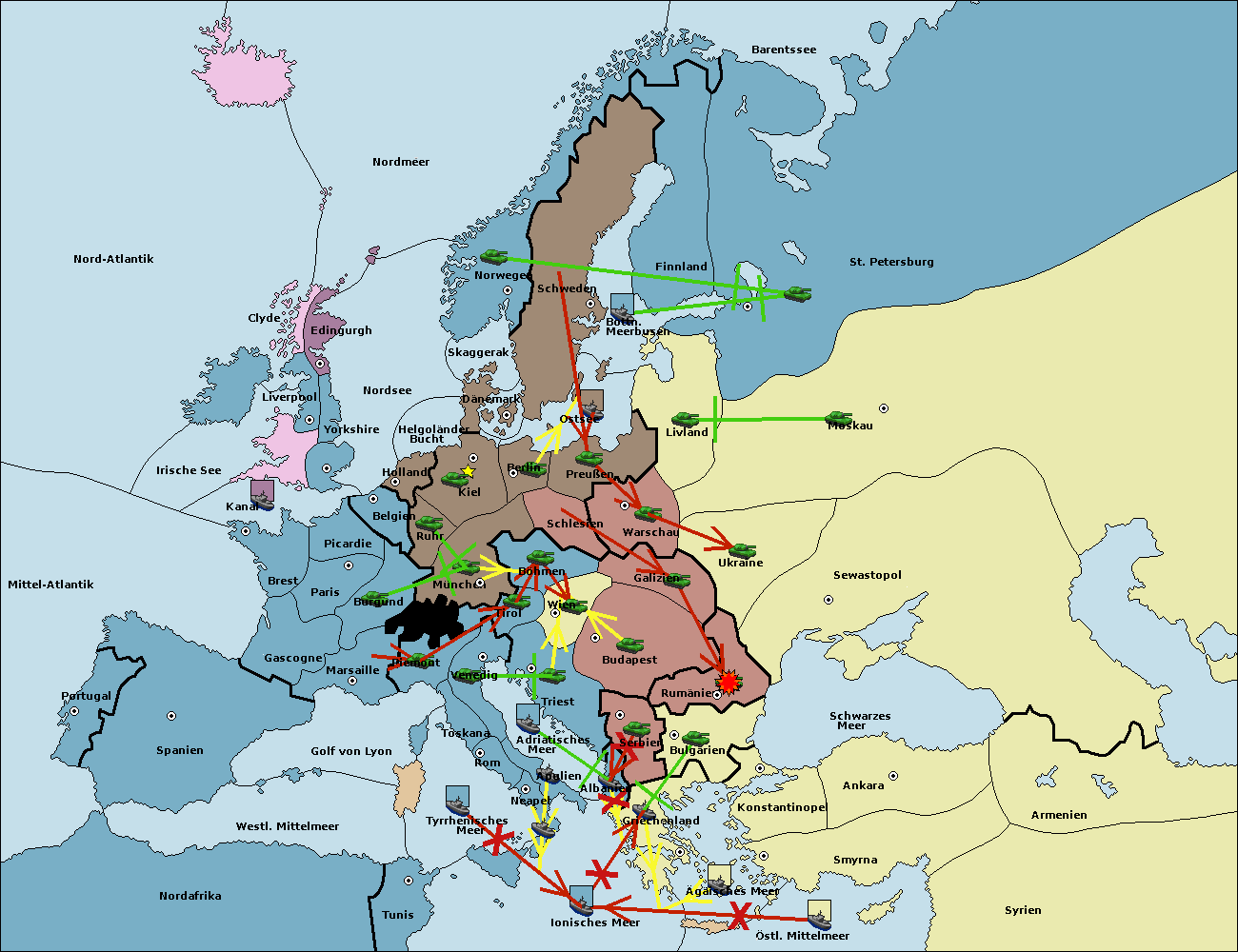 • Die Flotte in Konstantinopel support hold nach Bulgarien.