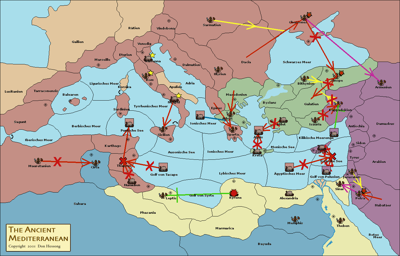 • Die Armee in Memphis move nach Kyrene. (gescheitert)