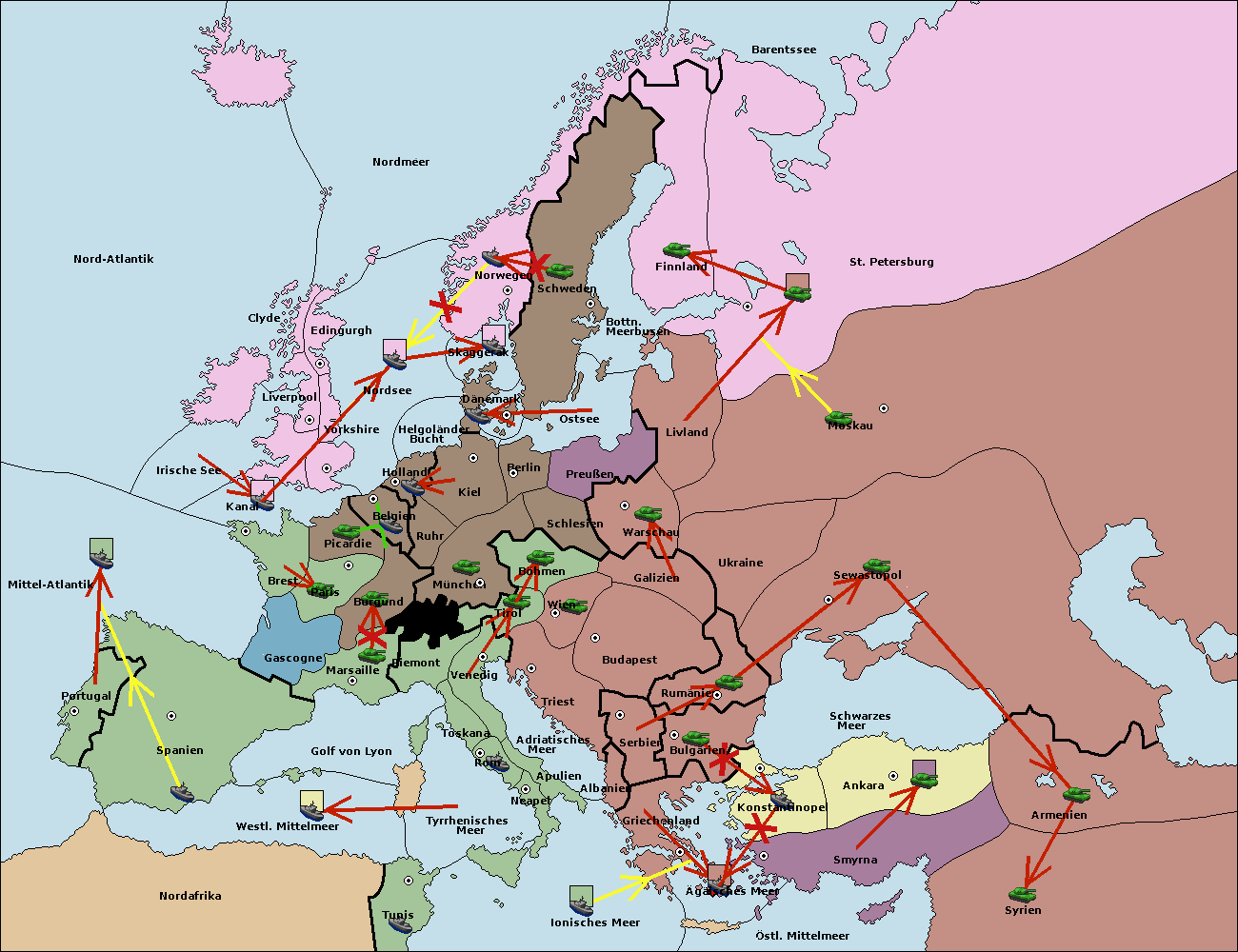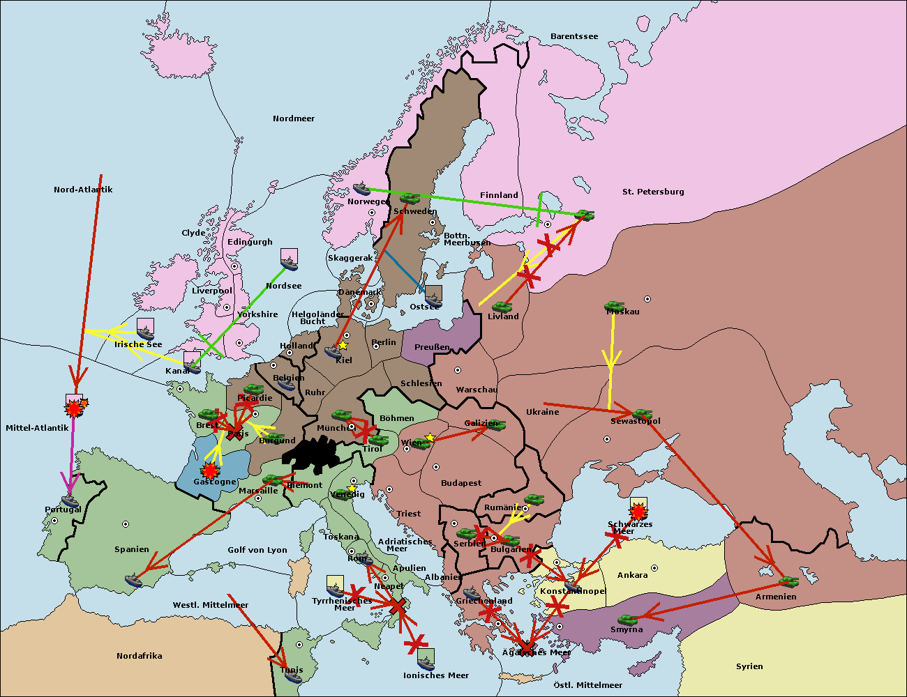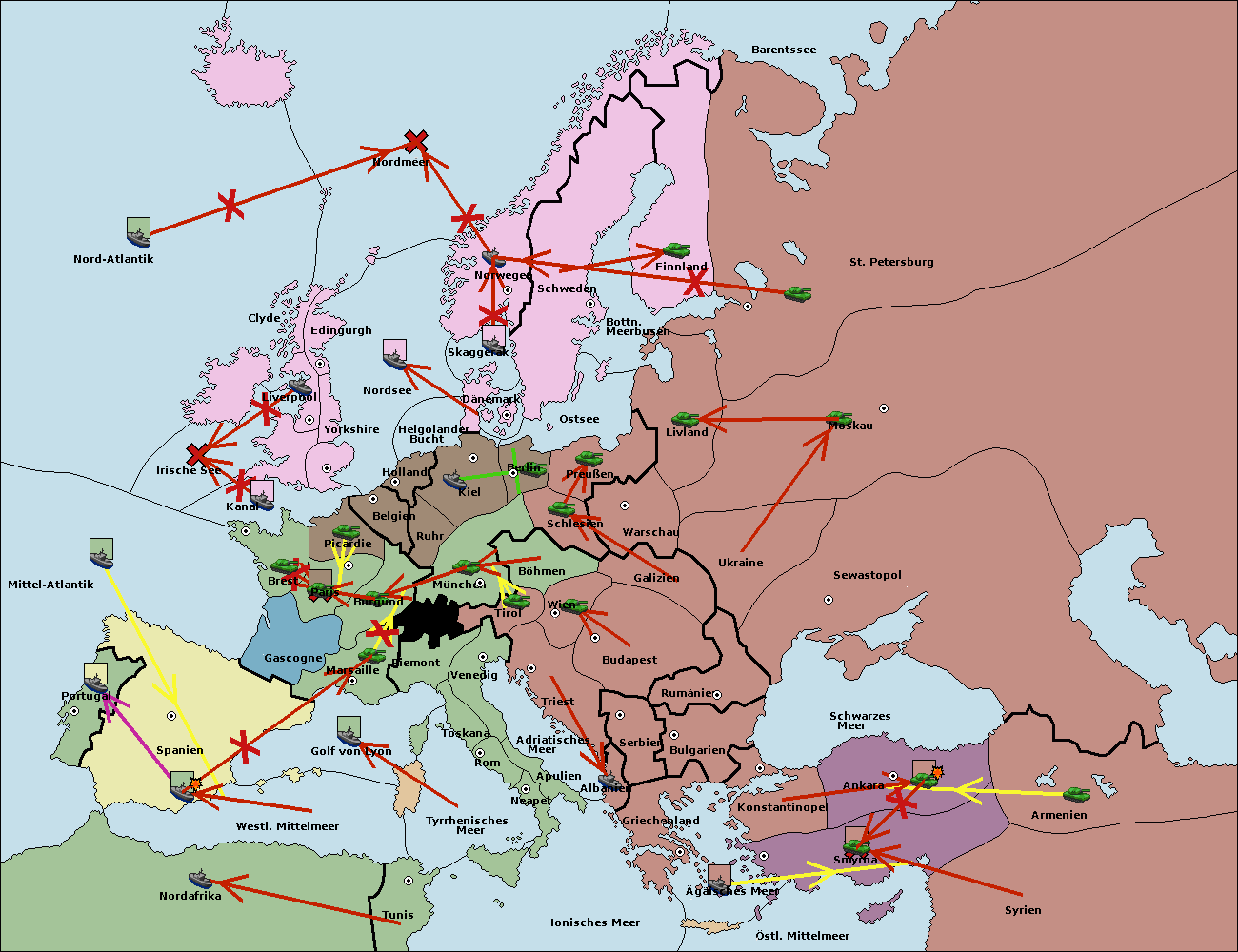 • Die Armee in Bulgarien wird zerstörtFlotte in Bulgarien gebaut.