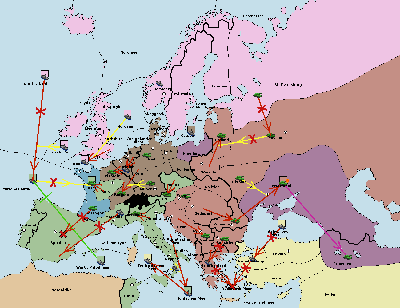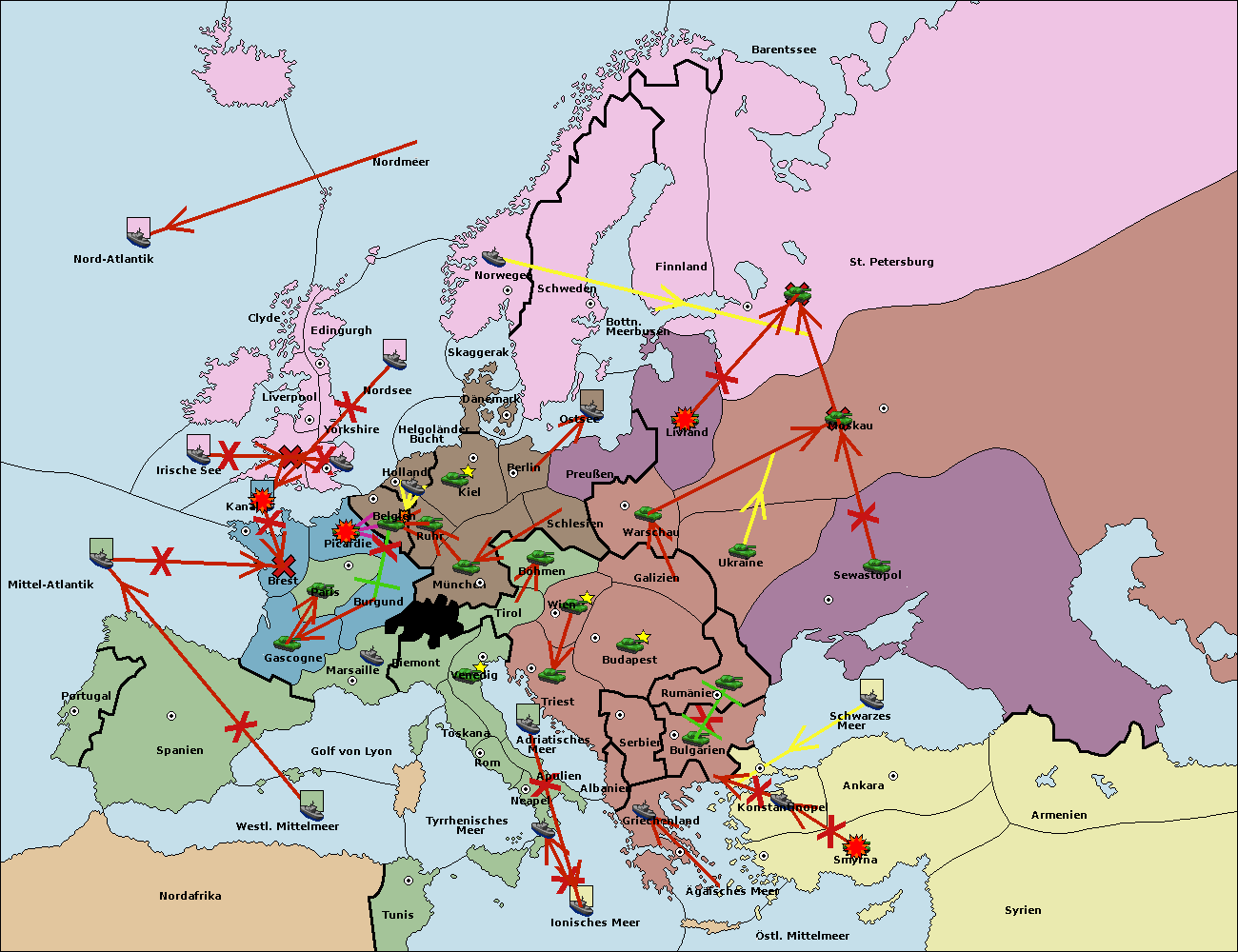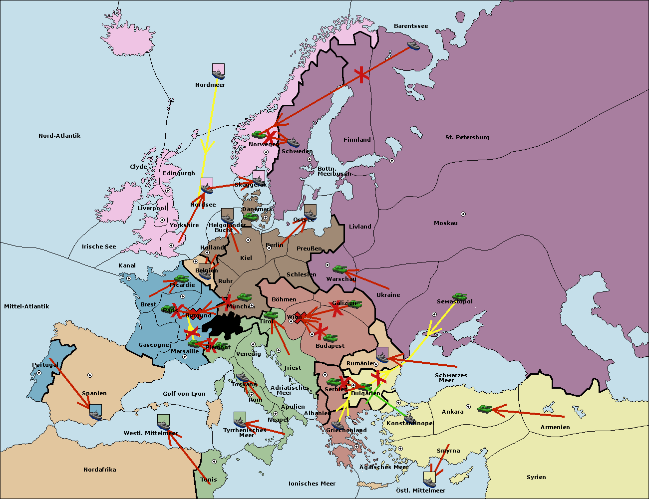 • Die Armee in Bulgarien wird zerstörtFlotte in Bulgarien gebaut.