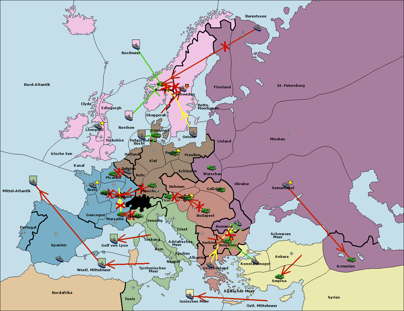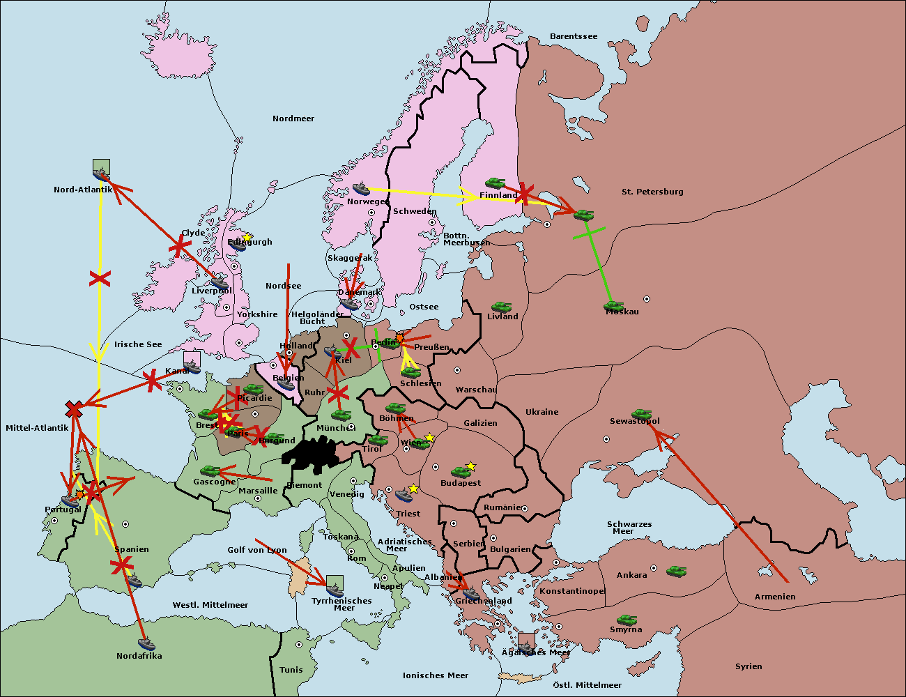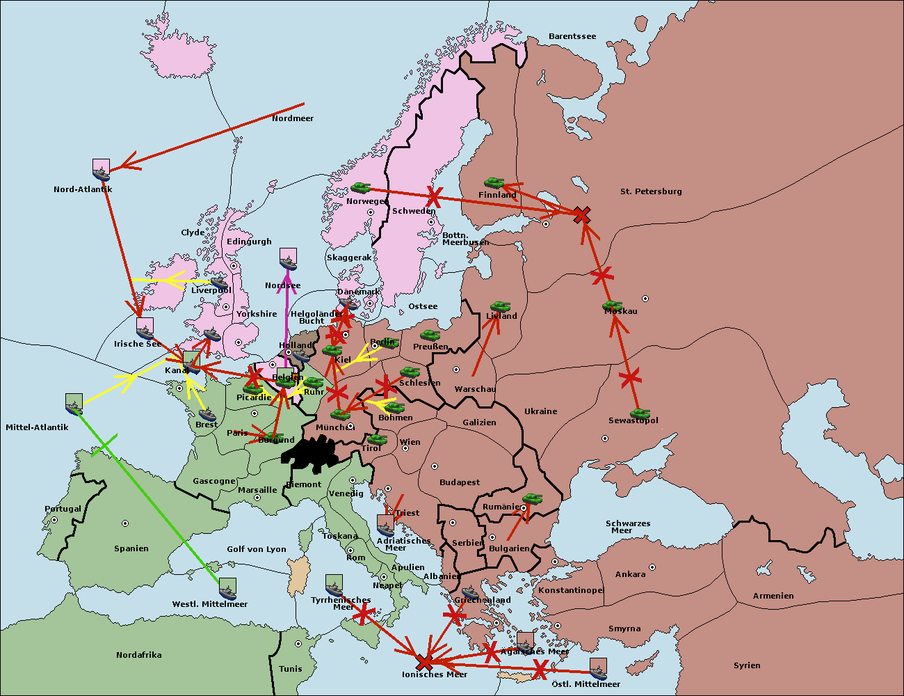 • Die Flotte in St. Petersburg (Nordküste) move nach Norwegen. (gescheitert)