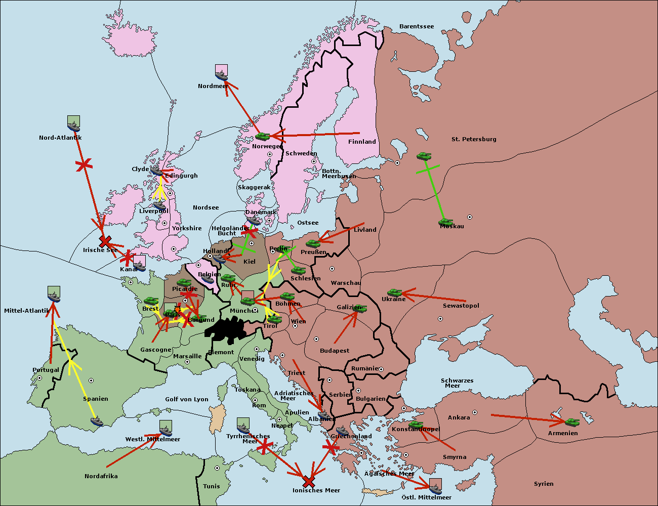 • Die Flotte in Dänemark support move nach Kiel von Berlin. (gescheitert)