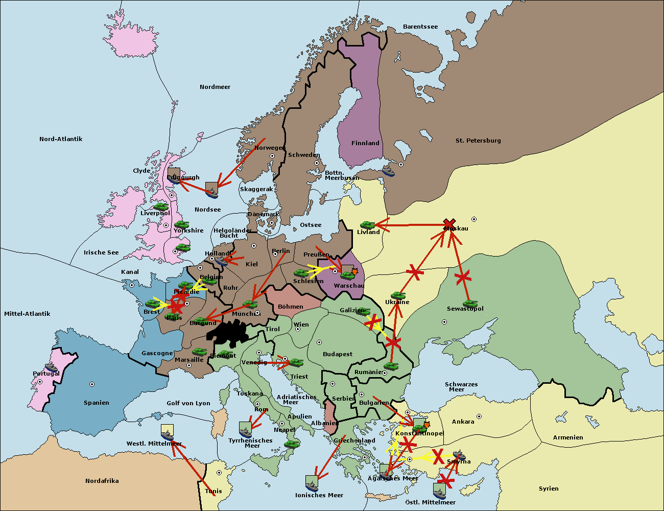 • Die Flotte in St. Petersburg (Südküste) support move nach Livland von Preußen.