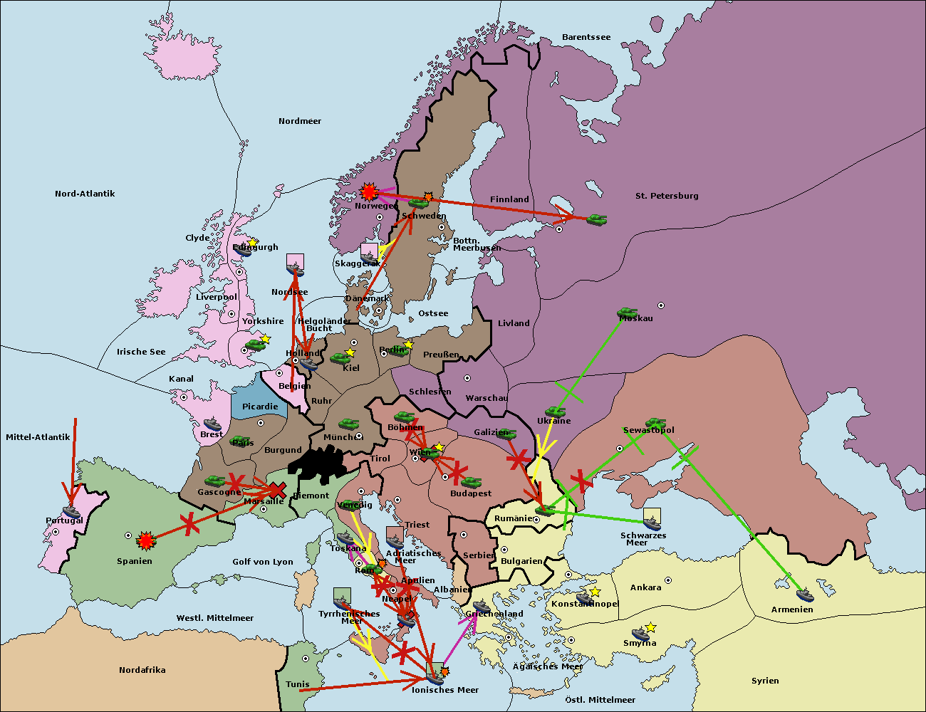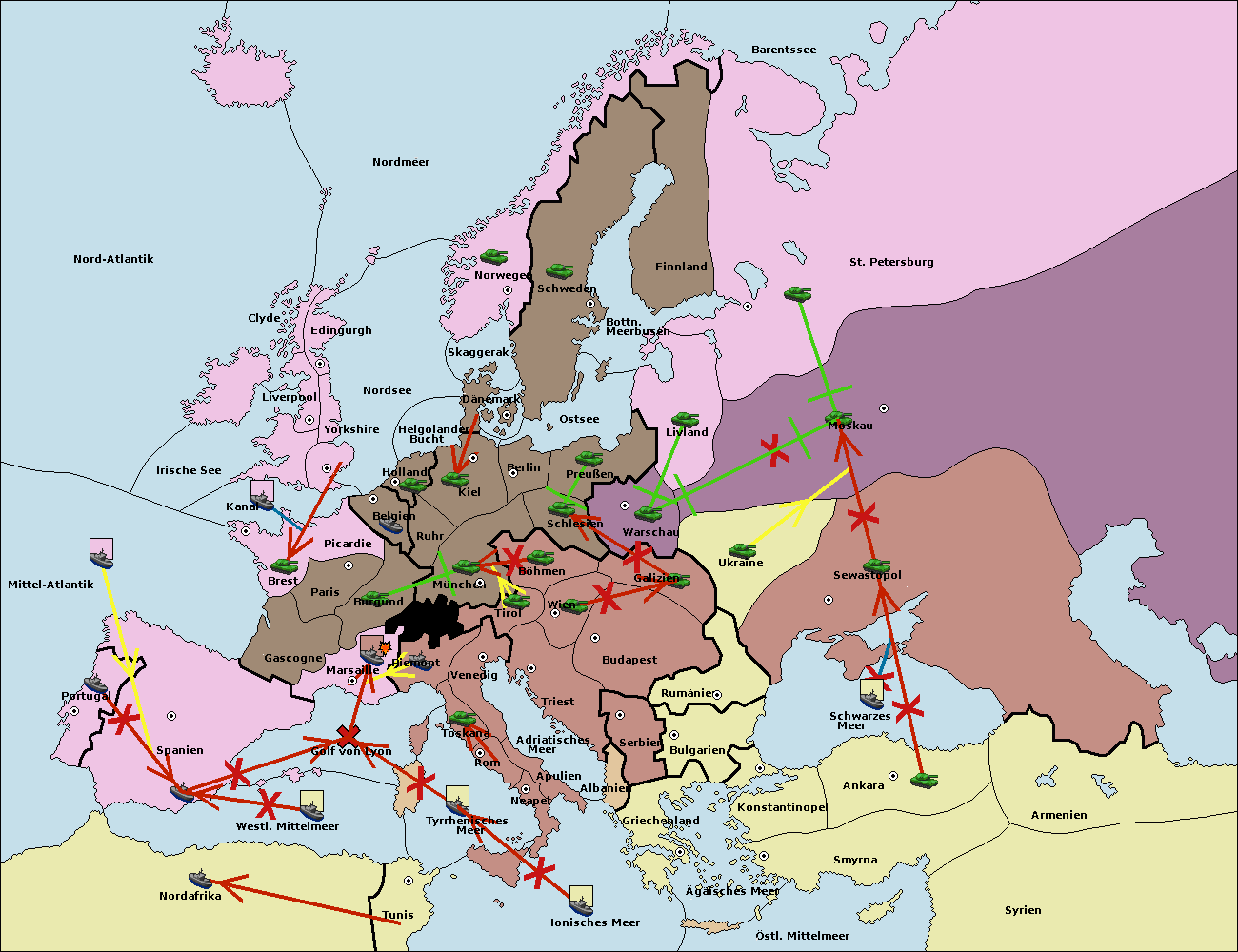 • Die Flotte in Spanien (Südküste) support move nach Mittel-Atlantik von westl. Mittelmeer.
