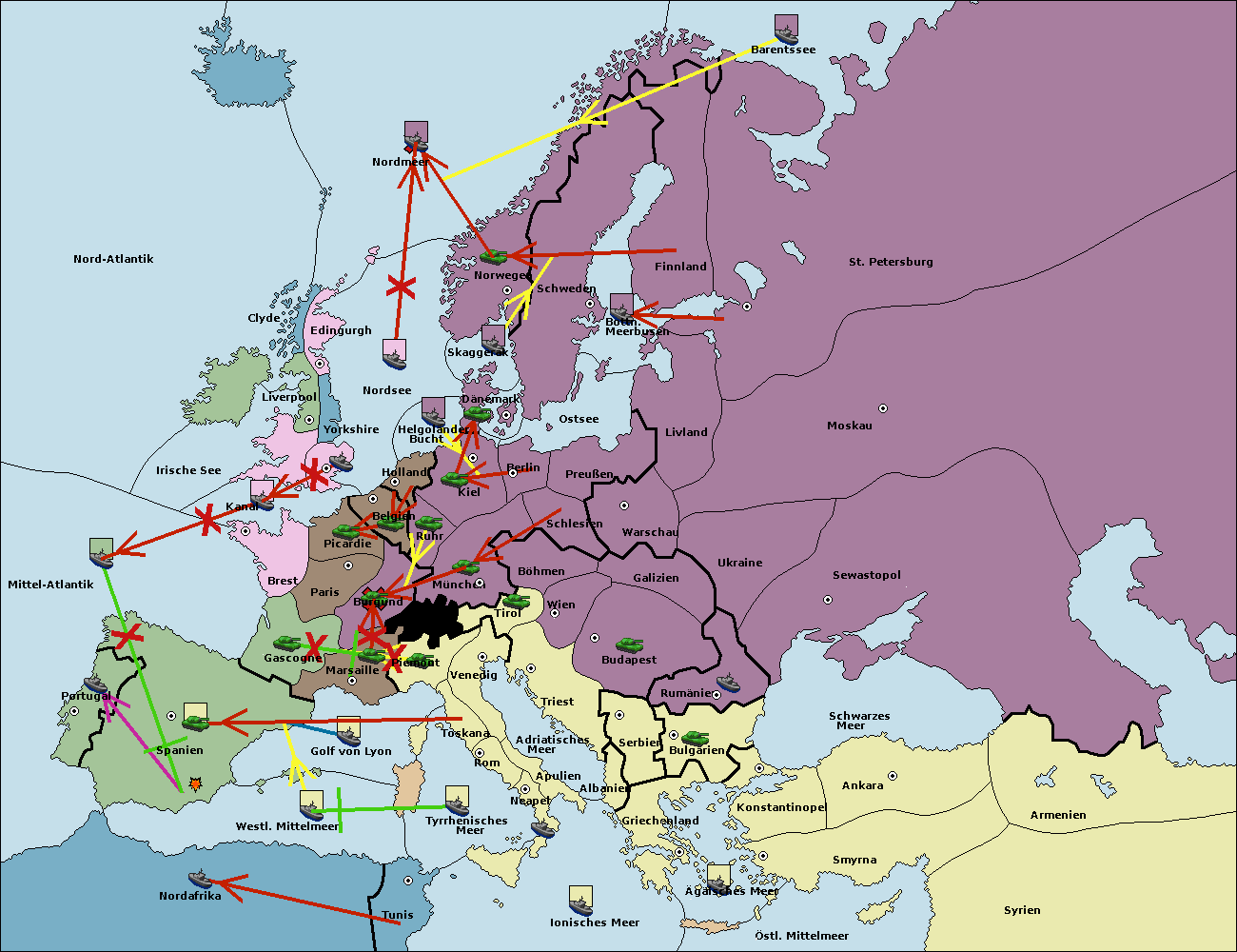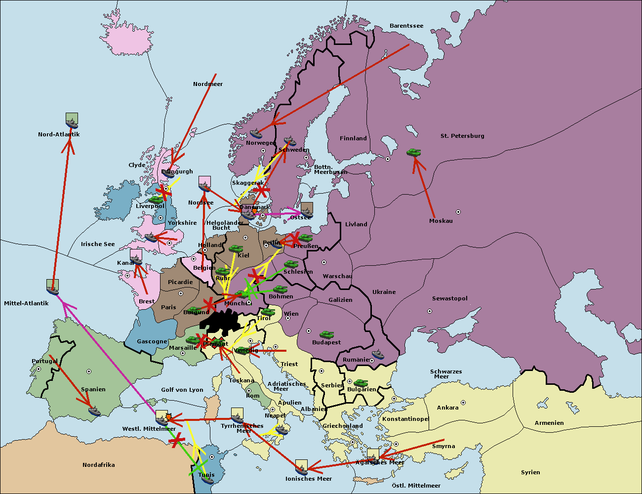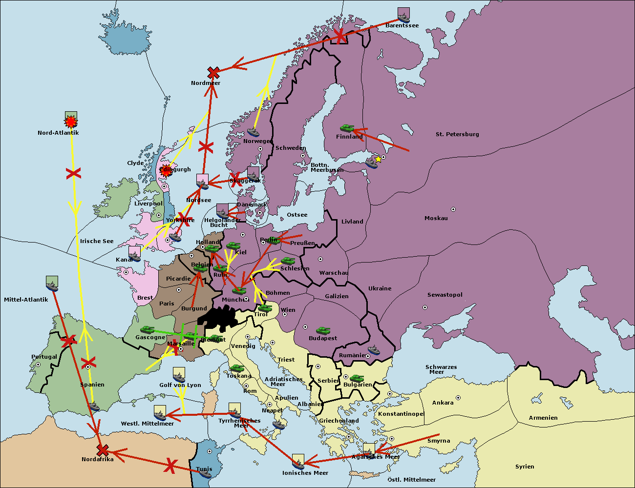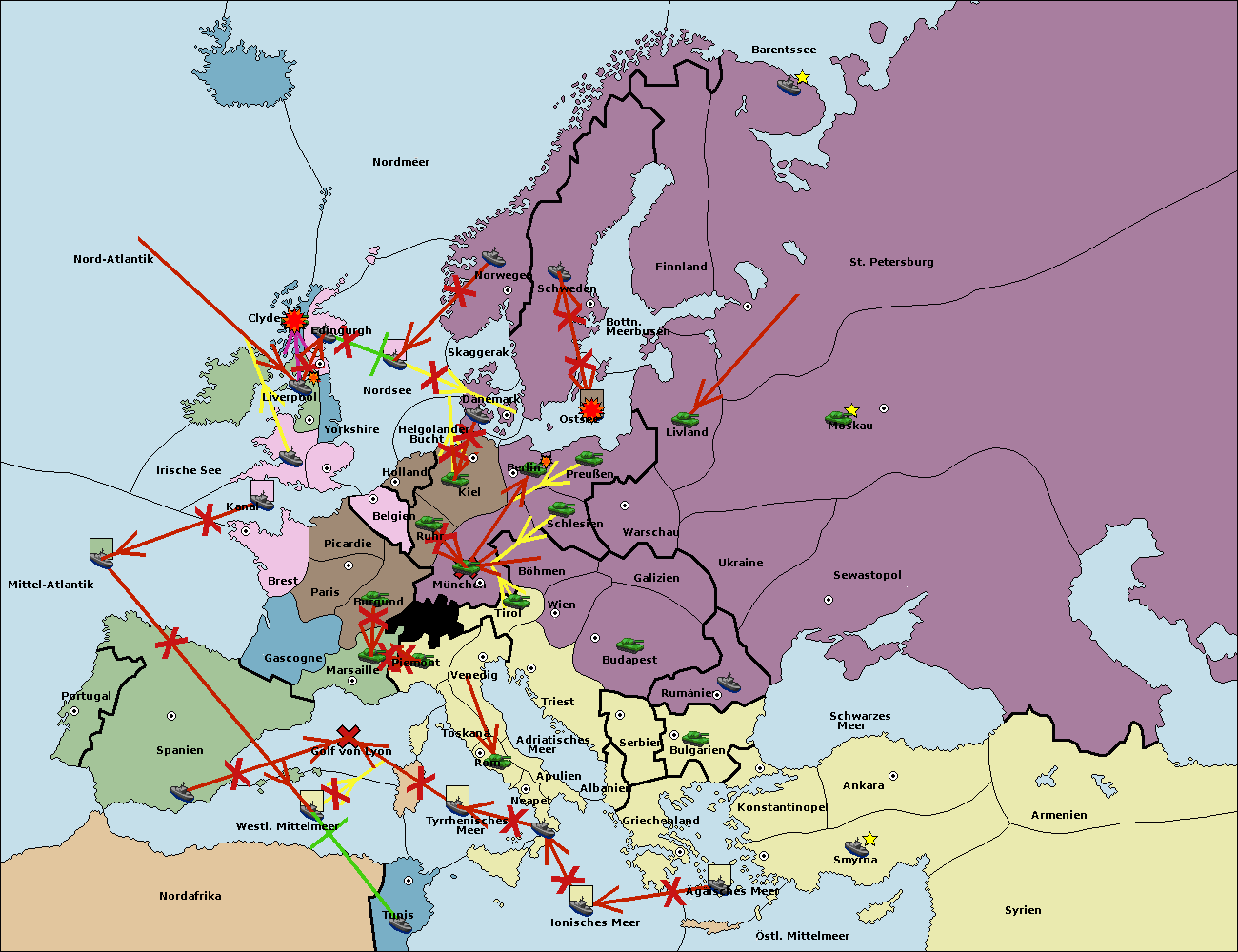 • Die Flotte in St. Petersburg (Nordküste) move nach Barentssee.