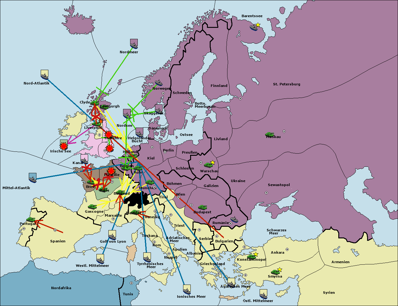 • Die Armee in Bulgarien wird zerstörtFlotte in Bulgarien gebaut.