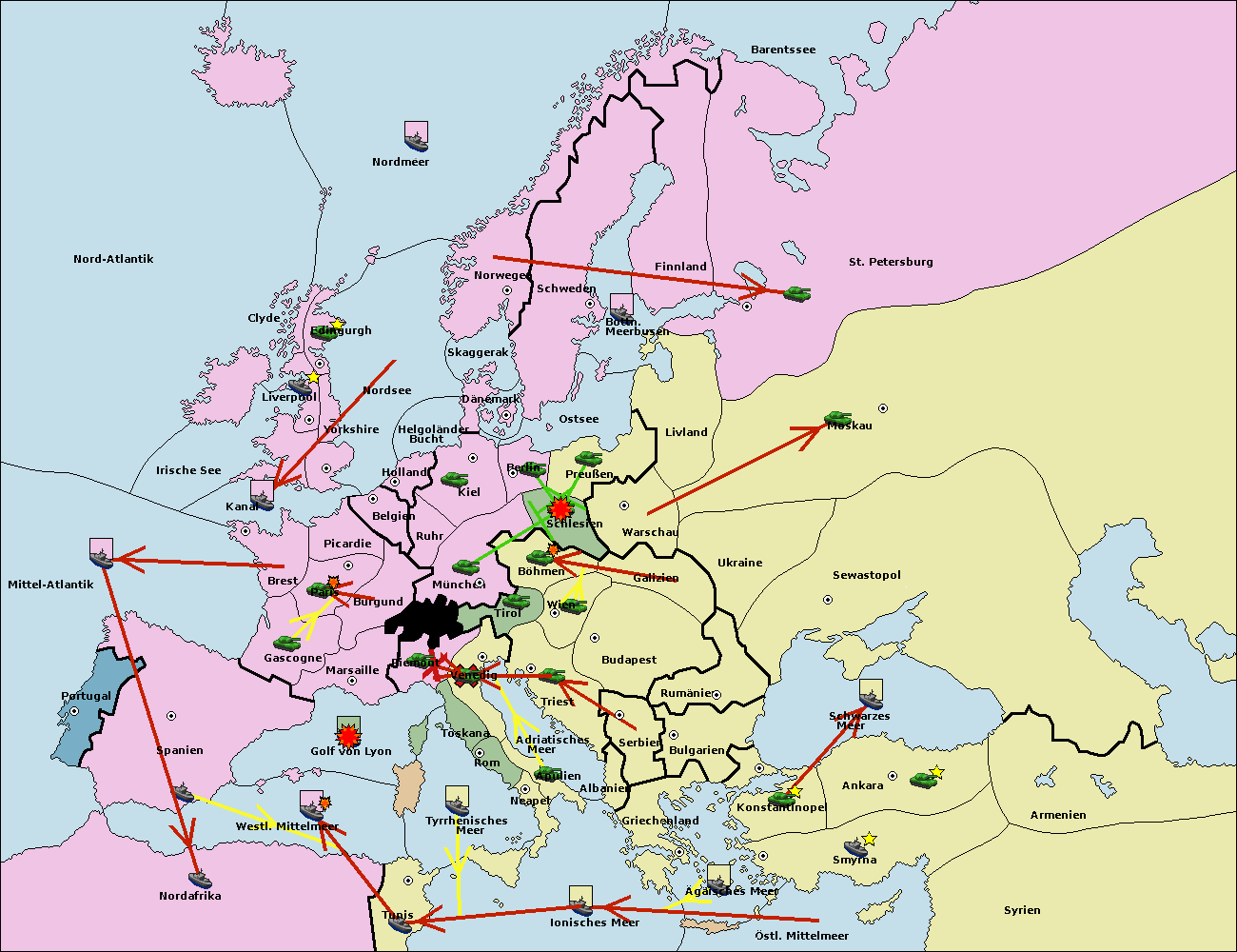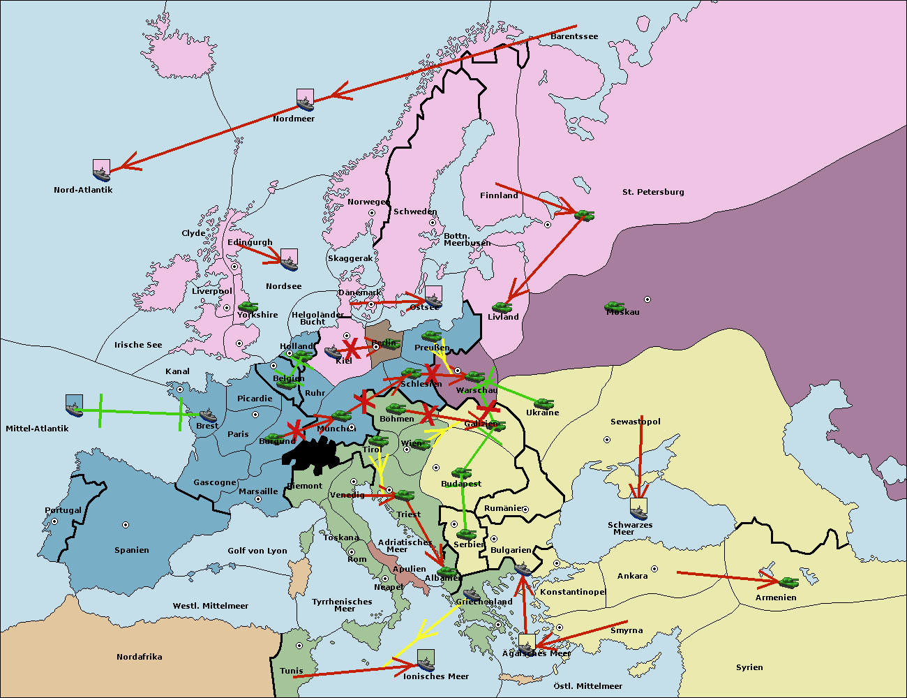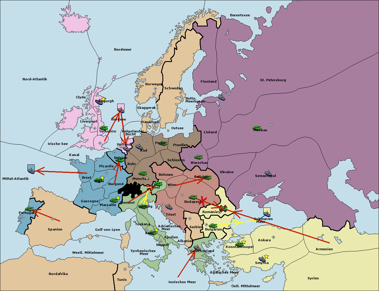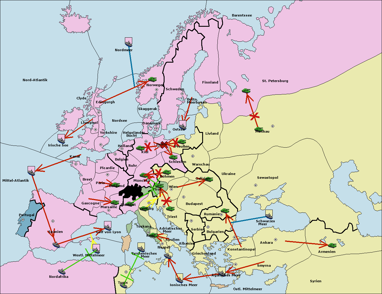 • Die Armee in München wird zerstörtFlotte in München gebaut.