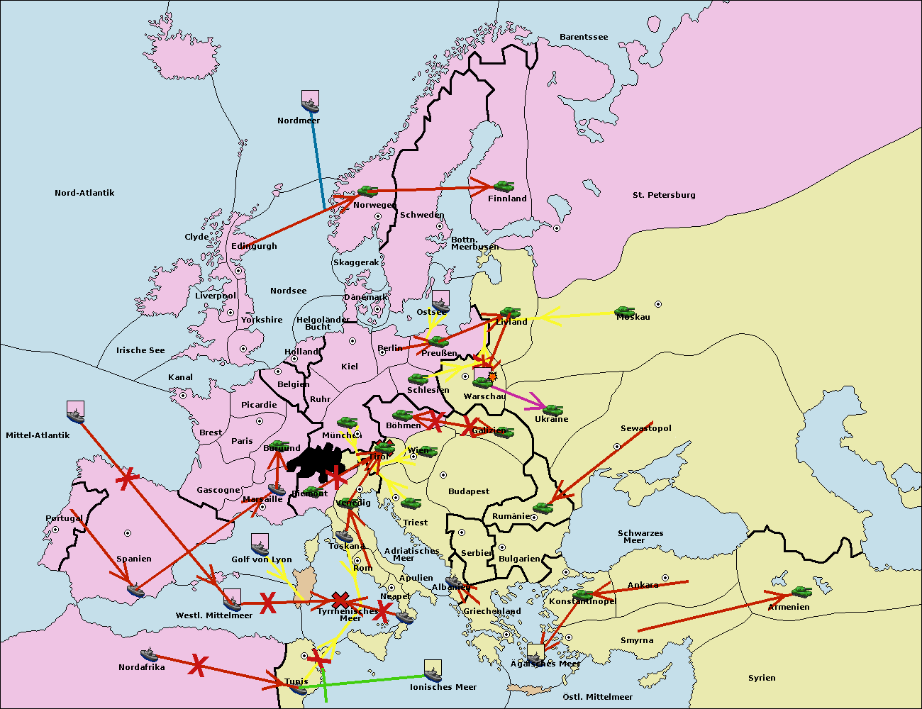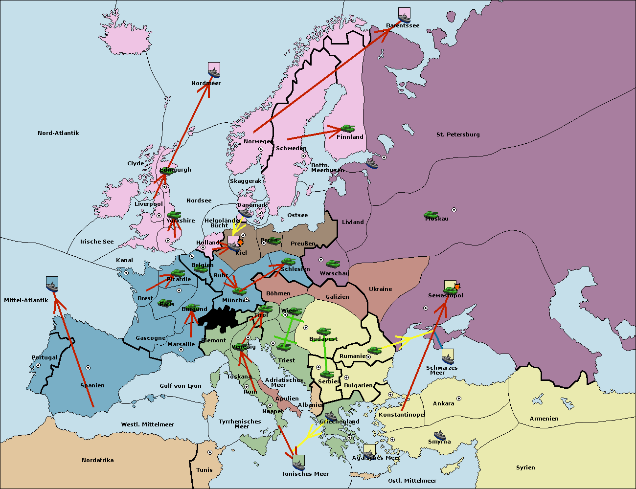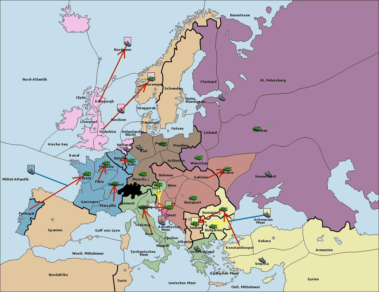 • Die Armee in München wird zerstörtFlotte in München gebaut.