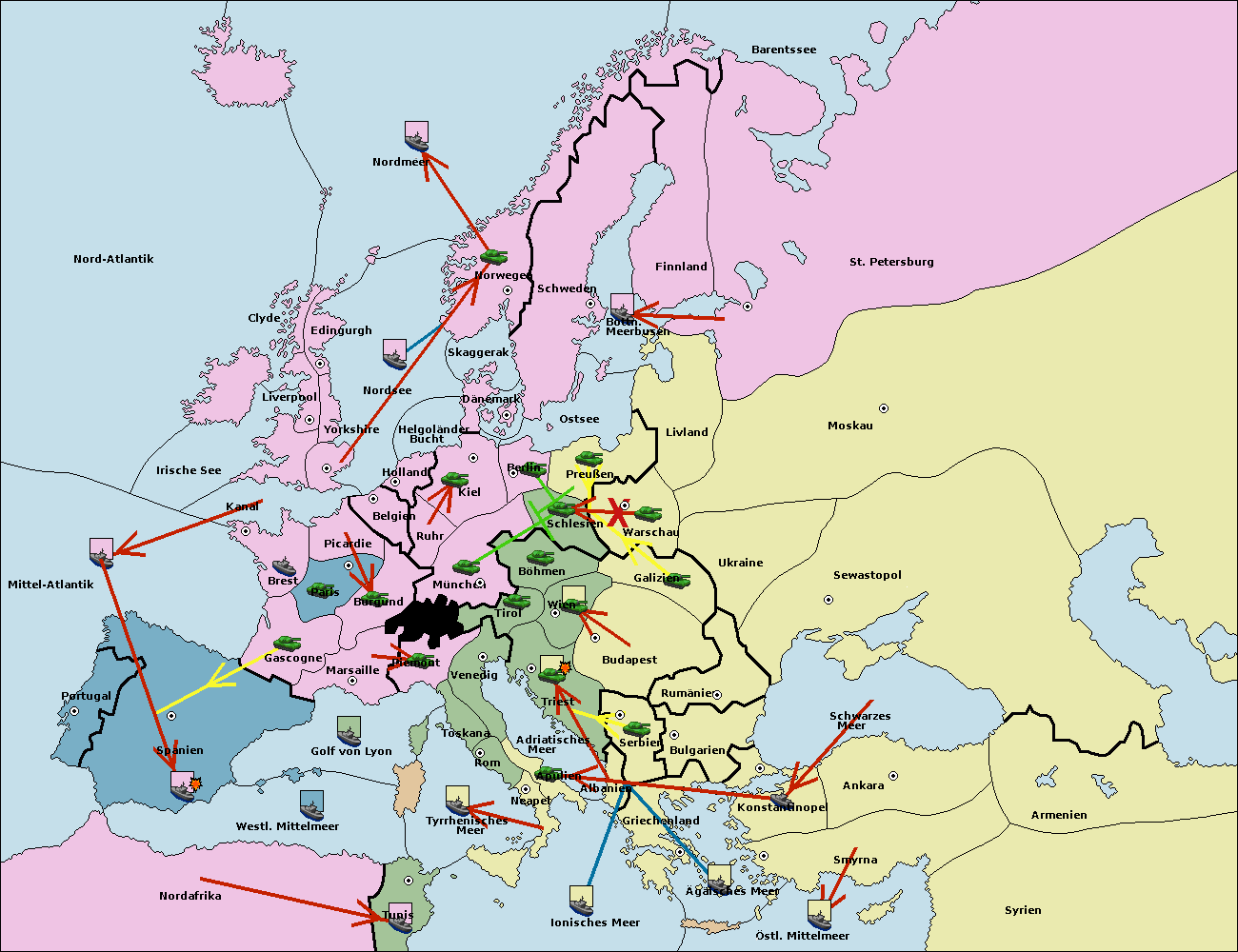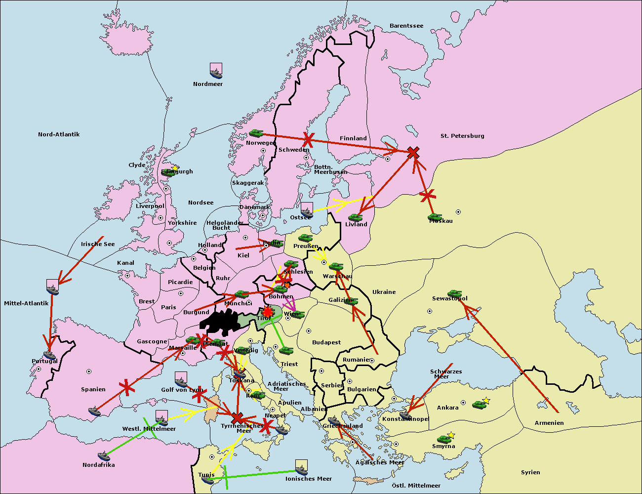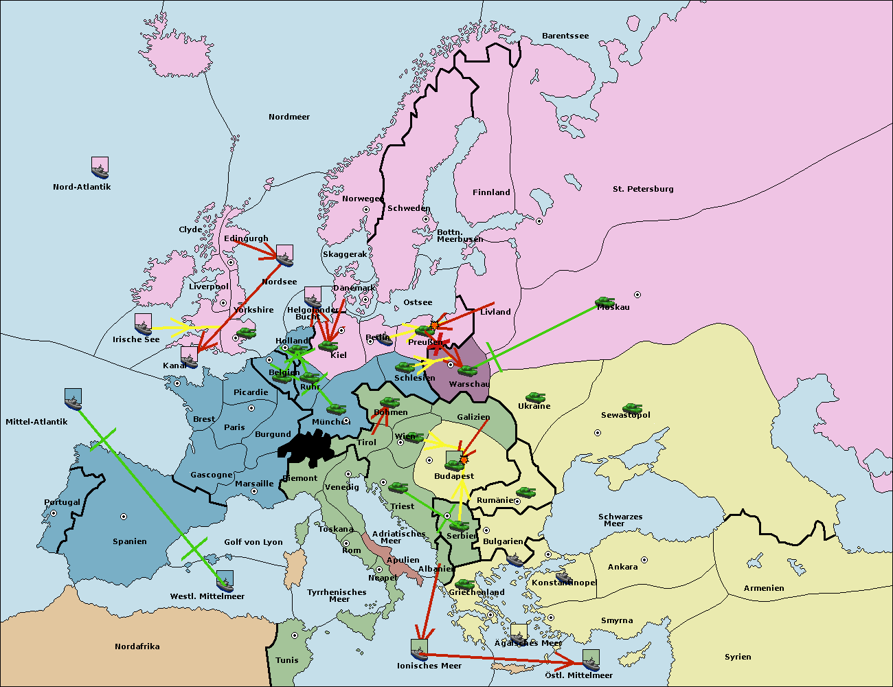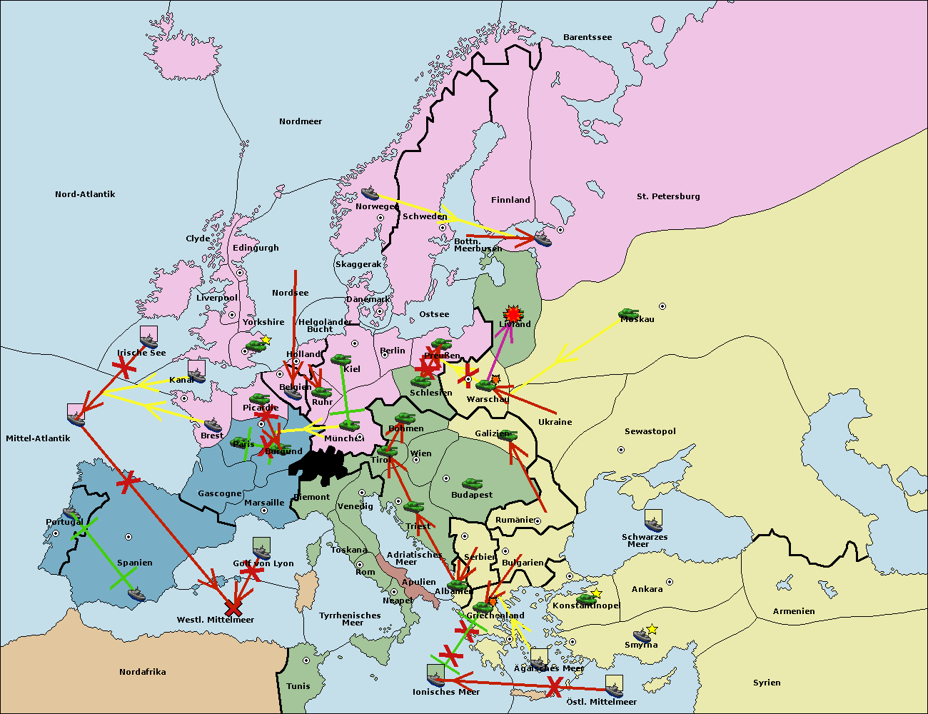 • Die Armee in München wird zerstörtFlotte in München gebaut.