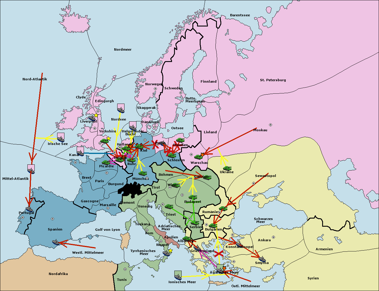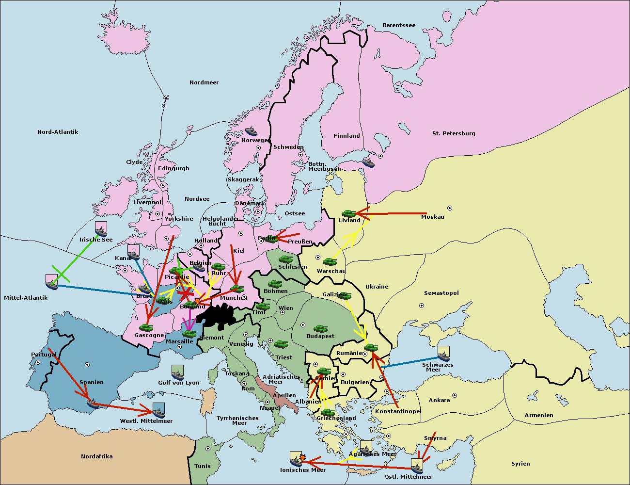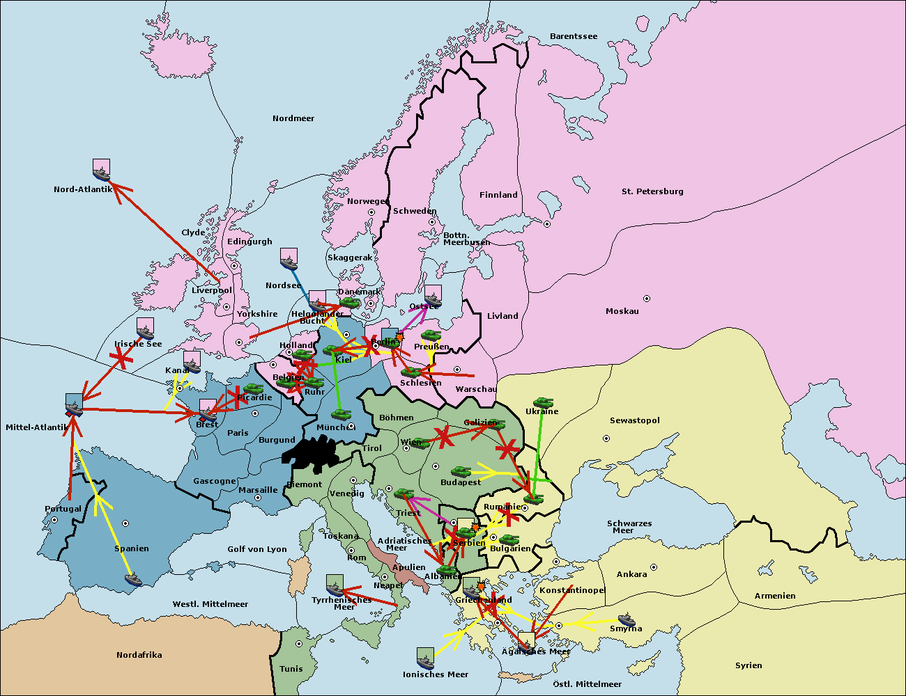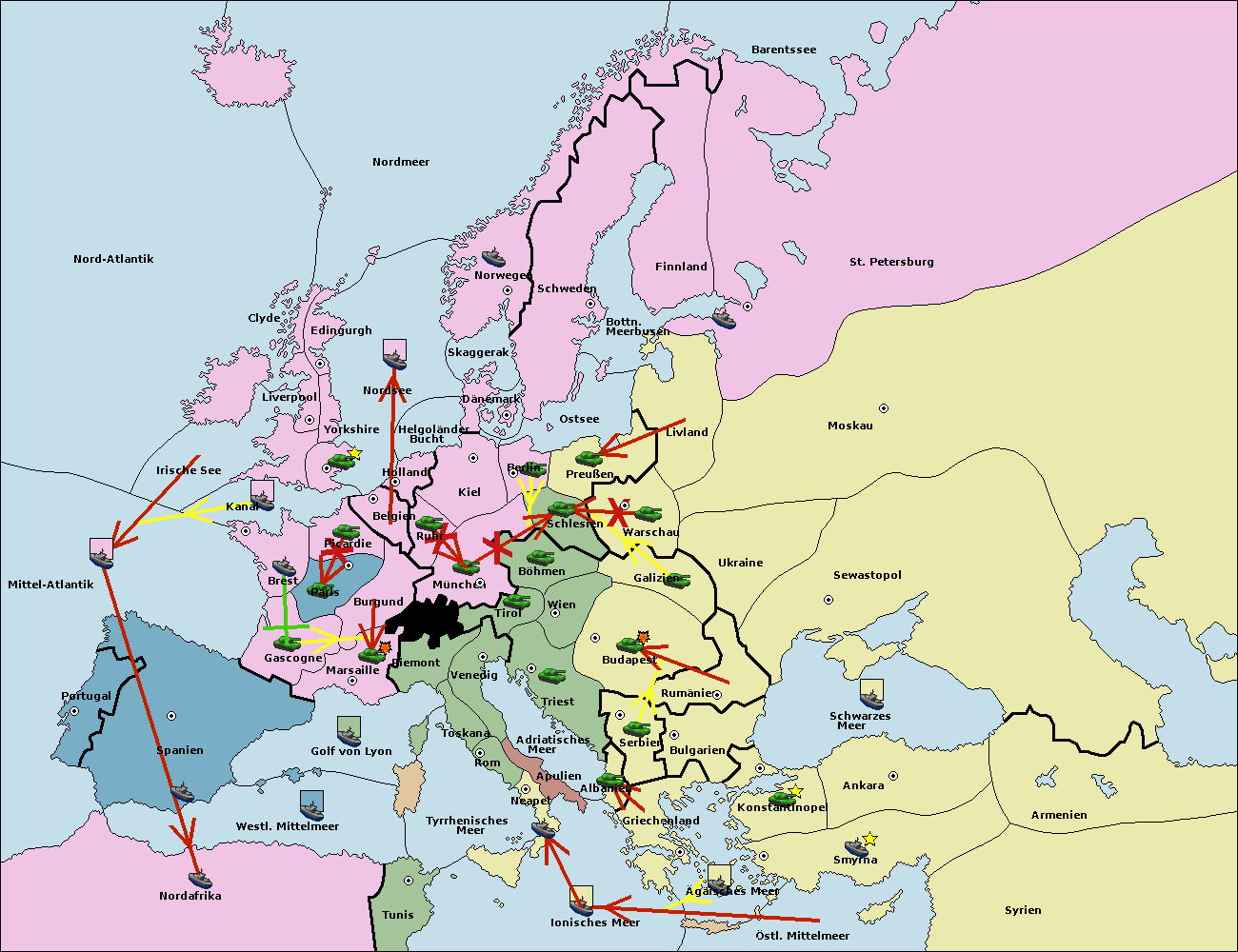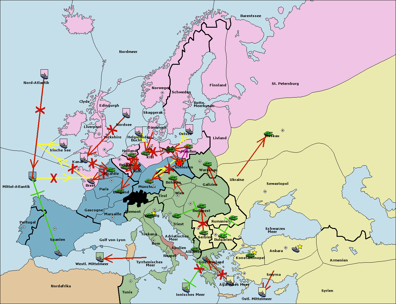 • Die Flotte in Nord Afrika support hold nach westl. Mittelmeer.