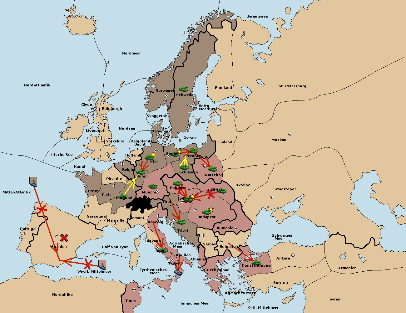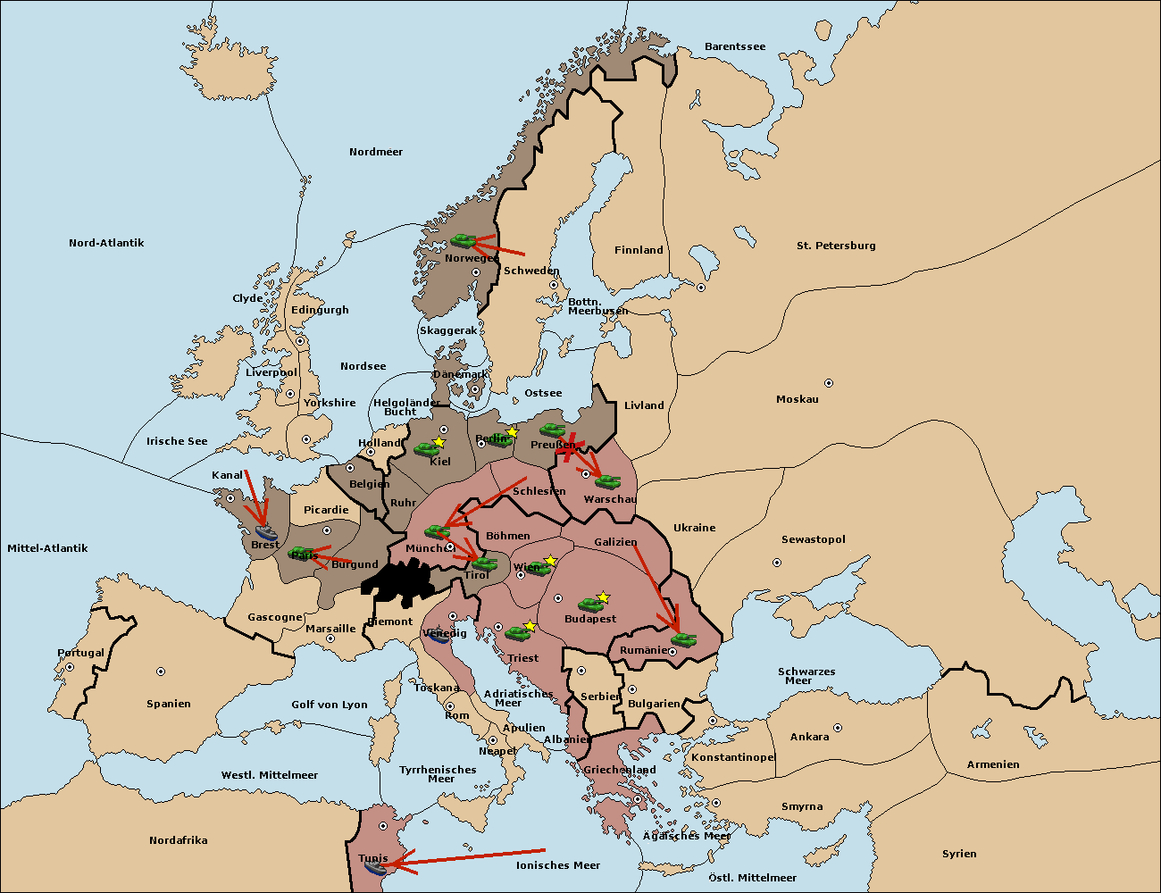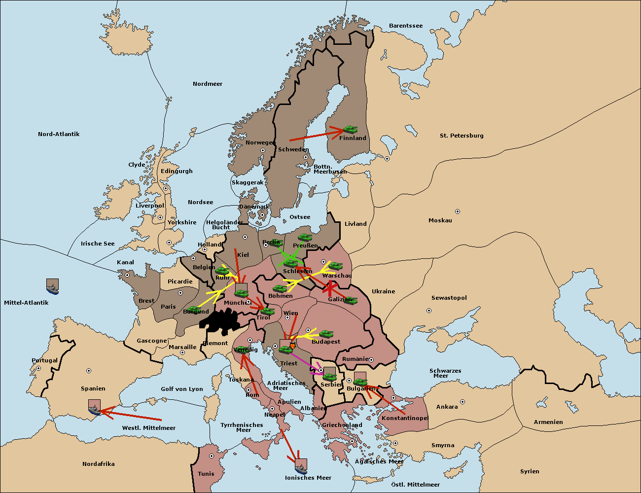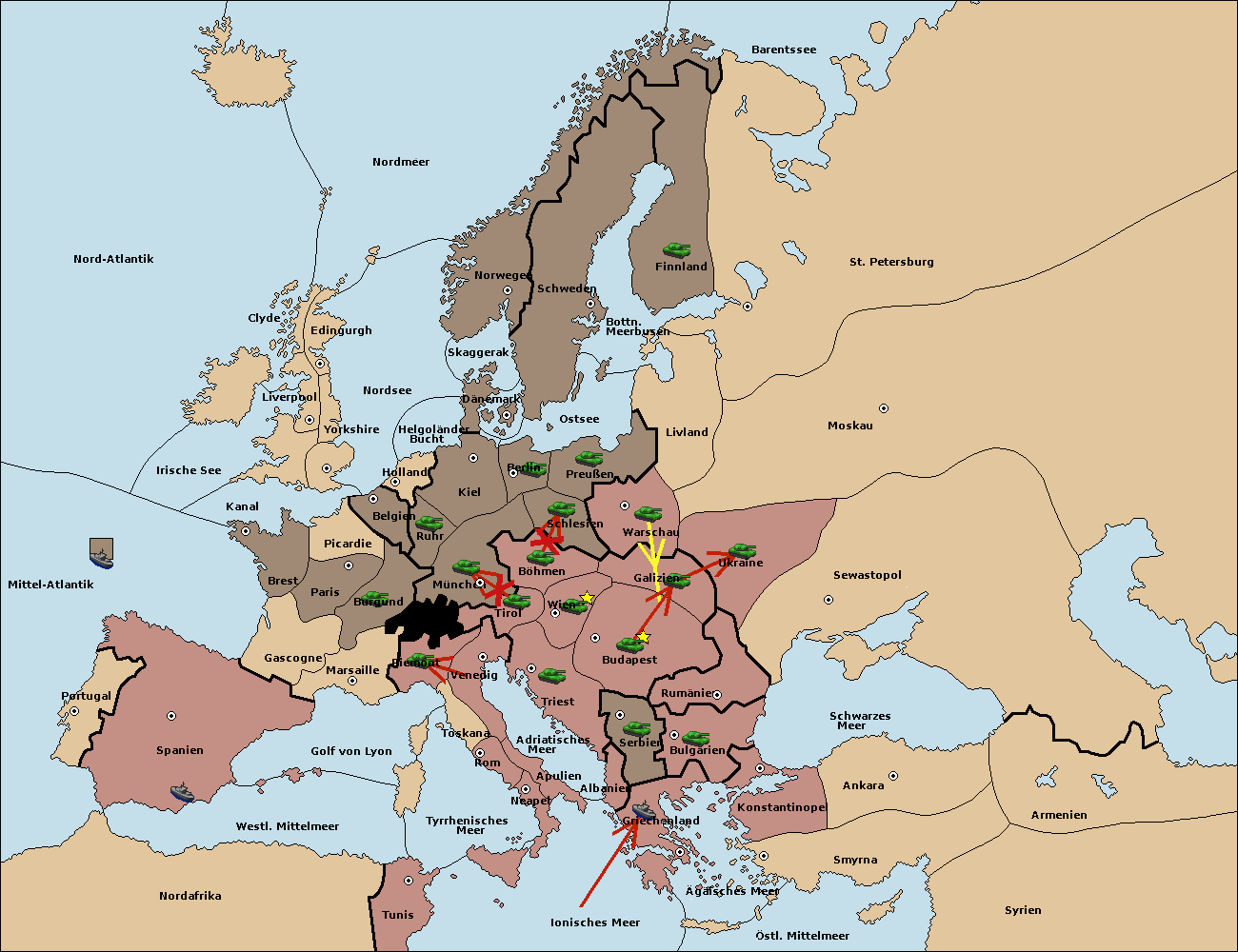 • Die Armee in Warschau support move nach Galizien von Wien.